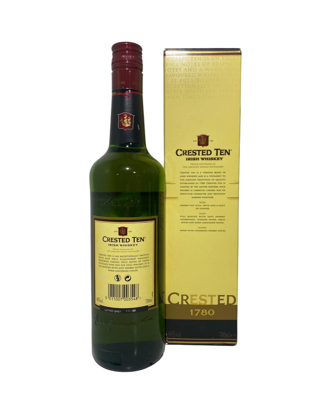This is the older version of Jameson Crested Ten (now relabelled as simply 'Crested').Its been said amongst the whiskey community that thi is a far better example than the standard Jameson, it has just a bit more flavour and complexity, meaning it is a little easier to drink straight up without a mixer or ice! The blend composition is very similar to the regular Jameson but has a little more ageing. Some extra use of sherry casks also adds some nice weight and spicy fruitiness.