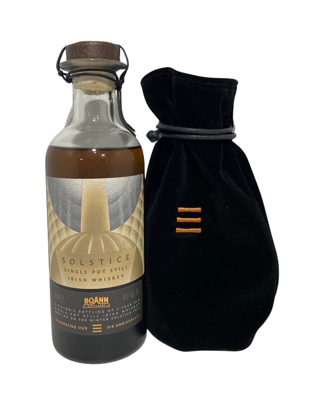 Distilled on the Winter Solstice of 2019 and bottled on the Winter Solstice of 2022, Boann Distillery’s first aged Pot Still Irish Whiskey distilled in Drogheda in over 160 years. In 2019, the single pot still distillate was filled into different wine and spirit casks, including: NEOC (New Era of Oak Cask), PX, Armagnac, Sauternes, Moscatel, Chardonnay, Bordeaux, Rum and Marsala, and matured in the solitude of the distillery.The first bottles of ‘Solstice’, matured on site, came from a Pedro Ximenez hogshead 250ltr cask.The bottle design is a celebration of darkness into light, inspired by the Winter Solstice and the passing of time.