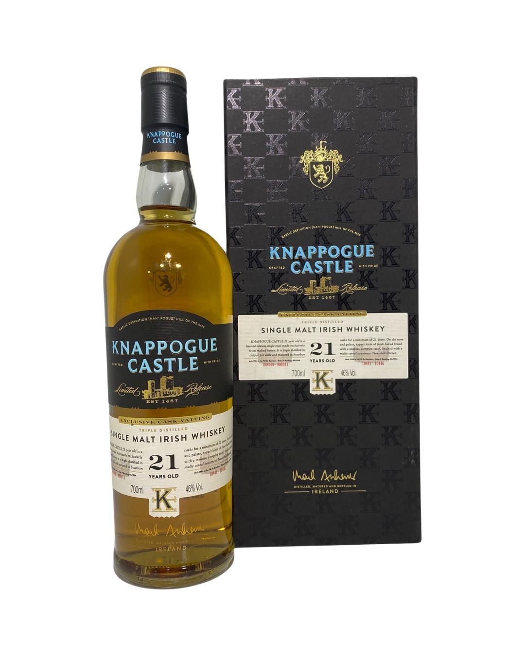 Knappogue 21 is a limited-edition single malt Irish whiskey, with only 1,200 bottles produced. First put into casks in 1994 and 1996, this marriage of two single malts - aged 21 and 23 years - is made exclusively from malted barley. Distilled in copper pot stills and matured in B1 bourbon casks, this expression is nonchill filtered and bottled at 92 proof.