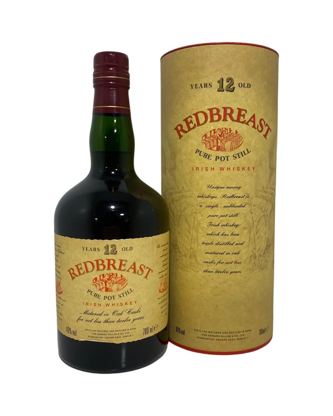 Redbreast is a single pot still whiskey, for which a combination of malted and un-malted barley are triple distilled in copper pot stills. The brand was created by W.A. Gilbey & Co, and bottled using whiskey sourced from Jameson's Bow Street distillery in Dublin. When Jameson amalgamated with Powers and Cork Distillers to form the Irish Distillers group, the Dublin distilleries were closed down, with all production moved to New Midleton distillery in Cork in 1975. Gilbey's discontinued the brand ten years later, but agreed to sell it to Irish Distillers who relaunched it in 1991.This is a 1990s example of the Irish Distillers revival of the brand, bottled for Edward Dillon & Co.