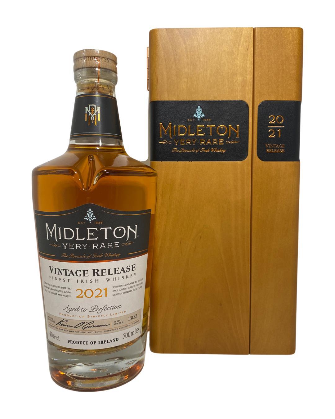 The 2021 edition to Ireland's most premium and beloved whiskey series; Midleton Very Rare. This is the 38th installment and the first release under Kevin O' Gorman appointed Master Distiller of the Midleton Distillery in 2020. Both the bottle and gift box are in very good condition, certificate and distillery invite are also included. The Midleton Very Rare range of whiskeys is a collection of highly regarded Irish whiskeys crafted at the Midleton Distillery in County Cork, Ireland. With a reputation for excellence, these whiskeys are known for their exceptional quality, craftsmanship, and limited availability. Characterized by smoothness, complexity, and depth of flavour, Midleton Very Rare often exhibits notes of ripe fruits, honey, vanilla, spices, and oak. The component casks are typically aged for around 12-27 years but each yearly batch is unique and for this reason the whiskeys are highly collectible. To this day the Midleton Very Rare series is still regarded as the pinnacle and benchmark for ultra-premium blended Irish whiskeys.