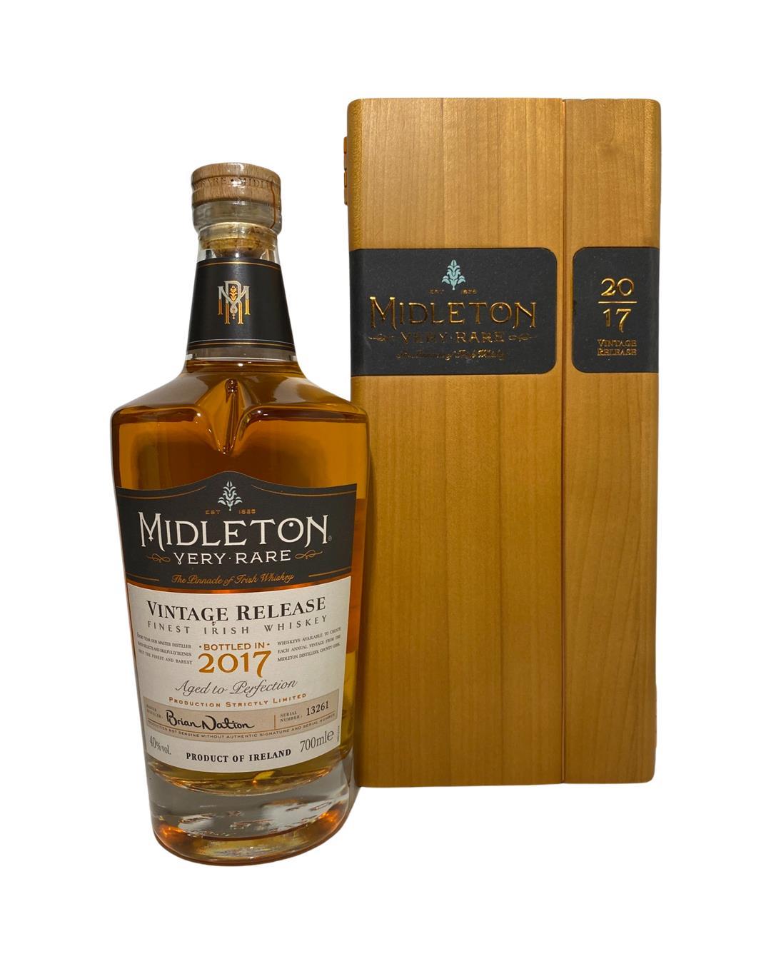 The Midleton Very Rare 2017, is a bottling brought out by the Midleton Distillery in Co. Cork. The ‘Midleton Very Rare’ range was launched in 1984 and a new vintage has been released every year since then. Barry Crockett started off the ‘Midleton Very Rare’ range while he was the Master Distiller of Midleton Distillery, in 2013 Barry Crockett retired from his role of Master Distiller. From 2014 onwards Brian Nation has been creating the ‘Midleton Very Rare’ range, maintaining its role as standard-bearer and pinnacle of Irish Whiskey. The bottle and gift box in great condition also include the cert and distillery invite. Old bottle style and label.The Midleton Very Rare range of whiskeys is a collection of highly regarded Irish whiskeys crafted at the Midleton Distillery in County Cork, Ireland. With a reputation for excellence, these whiskeys are known for their exceptional quality, craftsmanship, and limited availability. Characterized by smoothness, complexity, and depth of flavour, Midleton Very Rare often exhibits notes of ripe fruits, honey, vanilla, spices, and oak. The component casks are typically aged for around 12-27 years but each yearly batch is unique and for this reason the whiskeys are highly collectible. To this day the Midleton Very Rare series is still regarded as the pinnacle and benchmark for ultra-premium blended Irish whiskeys.