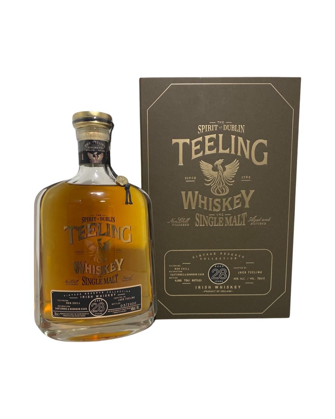 Building on the international success of the Teeling 21 and Teeling 24 Year Old single malts, Teeling now present their latest release; Teeling 28 Year Old Single Malt. This whiskey consists of the same liquid as the World's Best Single Malt winning 24 Year Old single malt, aged for a further four years. This is a very limited release of vintage single malt whiskey, celebrating the very best that Teeling has to offer. Initially aged in ex- Bourbon casks and finished in Sauternes, this special whiskey is limited to just 4,000 bottles.