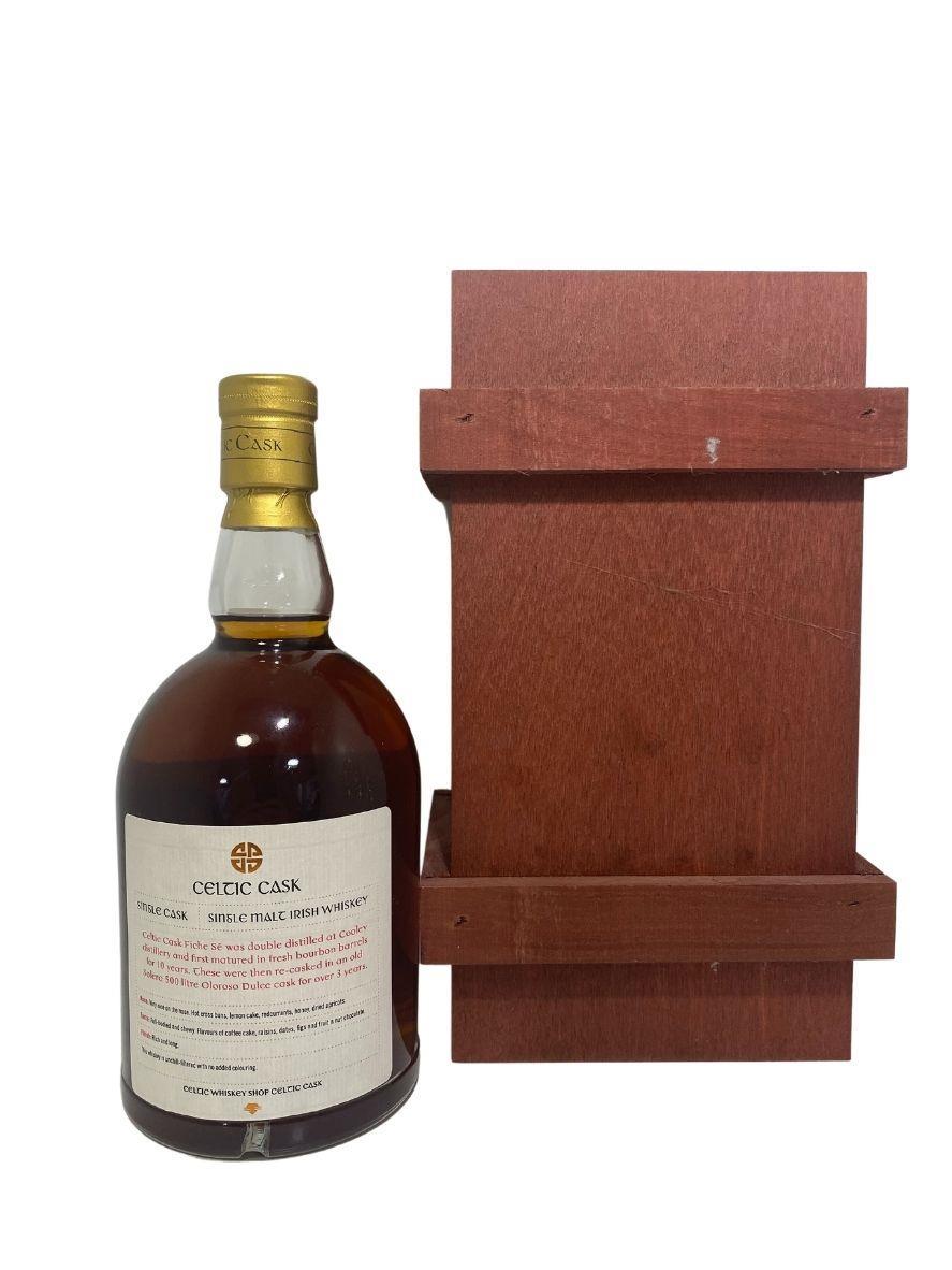 Celtic Cask Fiche Se was double distilled at Cooley distillery and first matured in fresh bourbon barrels for ten years. The were then re-casked in an old Solera 500 litre Oloroso Dulce Cask for over three years