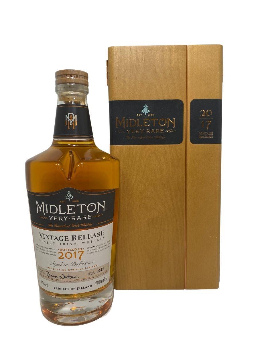 The Midleton Very Rare 2017, is a bottling brought out by the Midleton Distillery in Co. Cork. The ‘Midleton Very Rare’ range was launched in 1984 and a new vintage has been released every year since then. Barry Crockett started off the ‘Midleton Very Rare’ range while he was the Master Distiller of Midleton Distillery, in 2013 Barry Crockett retired from his role of Master Distiller. From 2014 onwards Brian Nation has been creating the ‘Midleton Very Rare’ range, maintaining its role as standard-bearer and pinnacle of Irish Whiskey. The bottle and gift box in great condition also include the cert and distillery invite.New Bottle and box style. Bottle 615