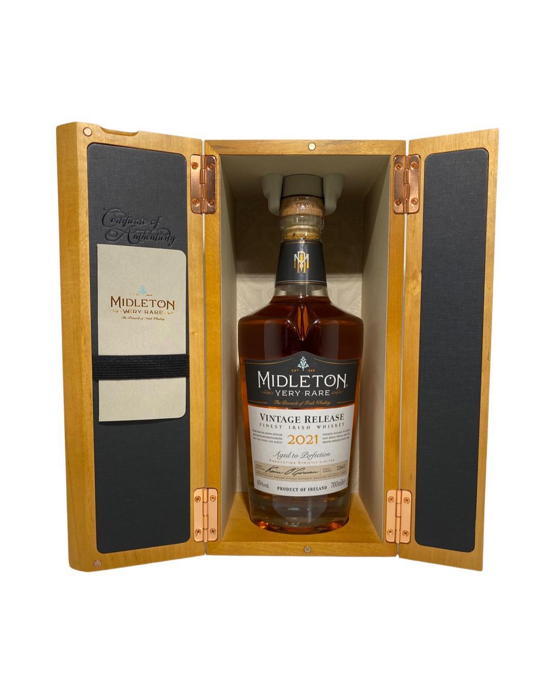 The 2021 edition to Ireland's most premium and beloved whiskey series; Midleton Very Rare. This is the 38th installment and the first release under Kevin O' Gorman appointed Master Distiller of the Midleton Distillery in 2020. Both the bottle and gift box are in very good condition, certificate and distillery invite are also included. The Midleton Very Rare range of whiskeys is a collection of highly regarded Irish whiskeys crafted at the Midleton Distillery in County Cork, Ireland. With a reputation for excellence, these whiskeys are known for their exceptional quality, craftsmanship, and limited availability. Characterized by smoothness, complexity, and depth of flavour, Midleton Very Rare often exhibits notes of ripe fruits, honey, vanilla, spices, and oak. The component casks are typically aged for around 12-27 years but each yearly batch is unique and for this reason the whiskeys are highly collectible. To this day the Midleton Very Rare series is still regarded as the pinnacle and benchmark for ultra-premium blended Irish whiskeys.