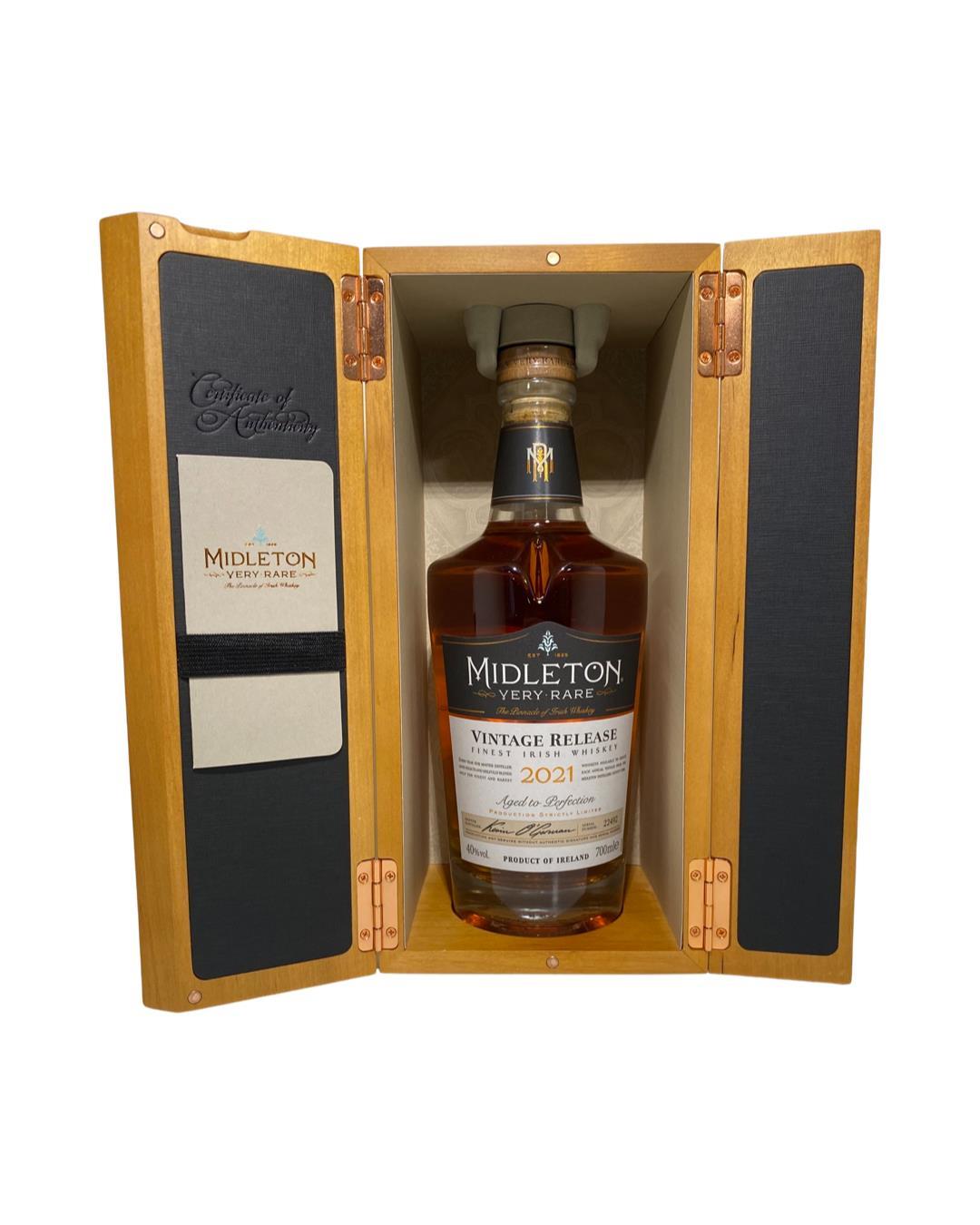 The 2021 edition to Ireland's most premium and beloved whiskey series; Midleton Very Rare. This is the 38th installment and the first release under Kevin O' Gorman appointed Master Distiller of the Midleton Distillery in 2020. Both the bottle and gift box are in very good condition, certificate and distillery invite are also included. The Midleton Very Rare range of whiskeys is a collection of highly regarded Irish whiskeys crafted at the Midleton Distillery in County Cork, Ireland. With a reputation for excellence, these whiskeys are known for their exceptional quality, craftsmanship, and limited availability. Characterized by smoothness, complexity, and depth of flavour, Midleton Very Rare often exhibits notes of ripe fruits, honey, vanilla, spices, and oak. The component casks are typically aged for around 12-27 years but each yearly batch is unique and for this reason the whiskeys are highly collectible. To this day the Midleton Very Rare series is still regarded as the pinnacle and benchmark for ultra-premium blended Irish whiskeys.