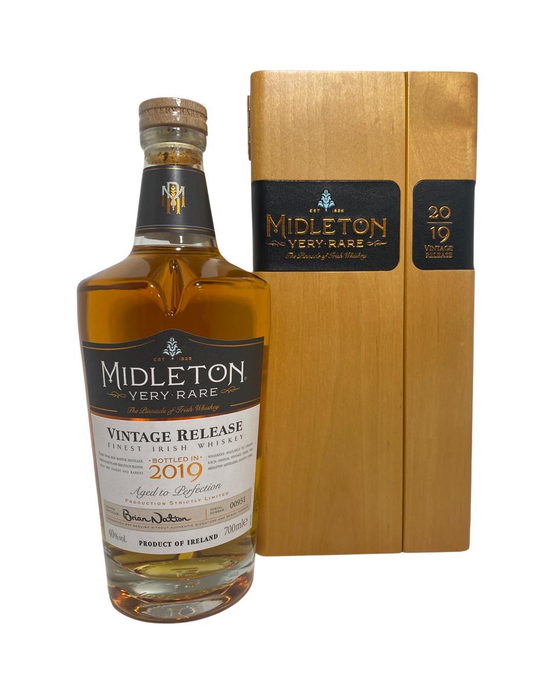 The Midleton Very Rare 2019, is a bottling brought out by the Midleton Distillery in Co. Cork. The ‘Midleton Very Rare’ range was launched in 1984 and a new vintage has been released every year since then. Barry Crockett started off the ‘Midleton Very Rare’ range while he was the Master Distiller of Midleton Distillery, in 2013 Barry Crockett retired from his role of Master Distiller. From 2014 onwards Brian Nation has been creating the ‘Midleton Very Rare’ range, maintaining its role as standard-bearer and pinnacle of Irish Whiskey. The bottle and gift box in great condition also include the cert and distillery invite.