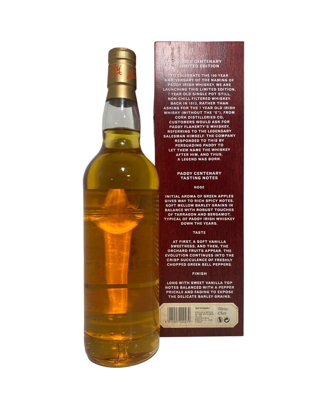 This special once-off release was introduced to celebrate 100 years of the famous brand, with the packaging, recipe and even spelling harking back to the time when Paddy Flaherty was selling Cork Distillers' whisky around the country. Back then, and up to the 1980s, it was a single pot still whisky rather then a blend and the distillery spelled its produce without the 'e'. It has been matured predominantly in first fill bourbon and sherry casks. Having tasting this, we all agree that it is a cut above the regular Paddy and is one of the most intensely fruity Irish whiskey available. This is a small volume release and unless they decide to keep it going it will dissapear very soon.