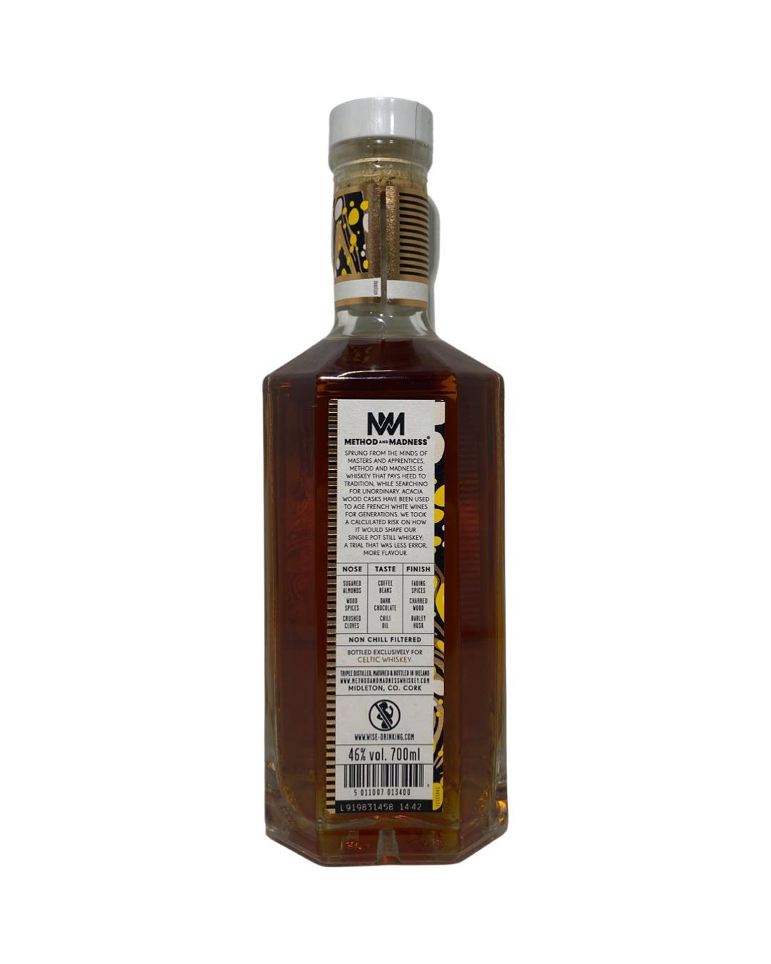 The first Celtic Whiskey Shop Method & Madness Limited Edition which has been matured in both Bourbon and Sherry casks before being finished in Acacia casks. Rich, nutty and chocolatey in flavour which is complemented by a mahogany hue. Limited release of 2500 bottles.