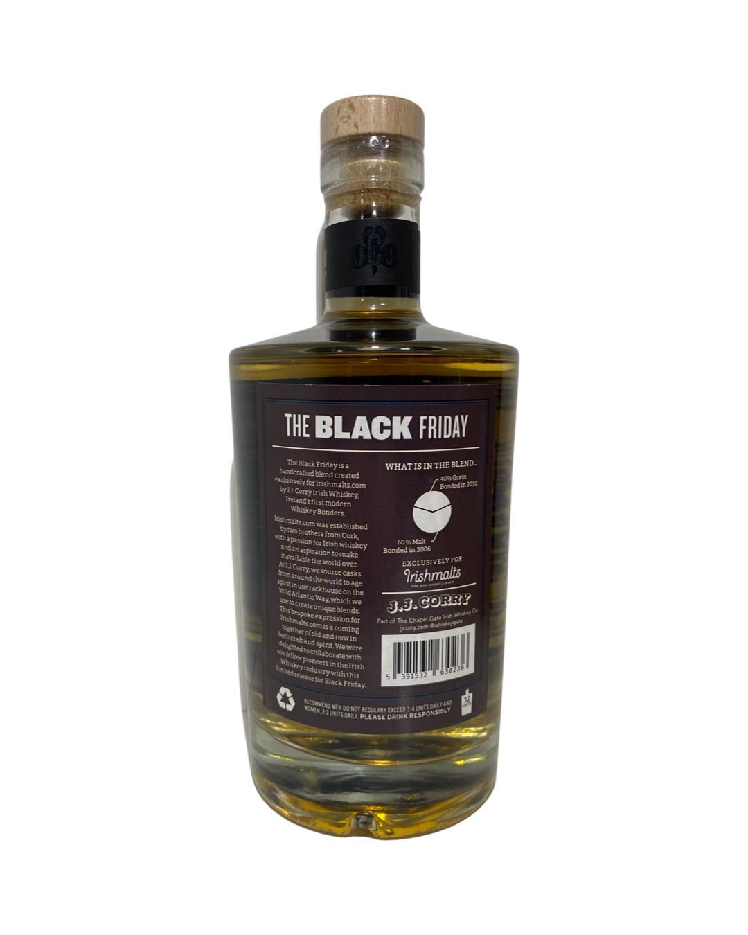 A 250 bottle Limited Edition release blended exclusively for Irishmalts. The Black Friday is a blend of 40% Single Grain (9 year old) and 60% Single Malt (13 year old).