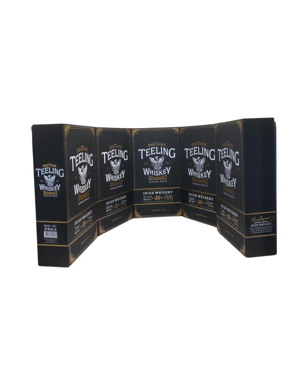 The teeling Renaissance collection is a 5 bottle series of 18 year old single malts each finished in a different cask. The first release of the Teeling Renaissance Series which has been matured in ex-Bourbon barrels then finished in Madeira casks for 18 months. This 18 Year Old Single Malt has rich flavours of toffee apples, dried fruits and a hint of Christmas spice. Limited to 9,000 bottles.The second release in the Teeling Renaissance Series. An 18 year old single malt whiskey initially aged in ex- Bourbon casks and finished for a period of no less than 18 months in Australian Shiraz barrels. Similarly to series one this batch is limited to just 9,000 bottles. The third release in the hugely popular Renaissance Series from Teeling. This has been aged for a total of 18 years with a final finishing period in Muscat wine casks. Offering a different style to the previous releases this is very much in the tropical fruit spectrum with mango, pineapple and citrus to the fore and even a touch of mint and pear drops. Following the success and acclaim of the Renaissance Series, Teeling has released the much anticipated Renaissance Series 4 at last! The Renaissance Series offers the very best Teeling has to offer and this release is no exception! For this expression, Teeling has matured in ex-bourbon barrels before receiving an extra maturation in ex-Pineau des Charentes casks which imparts flavours of mouth-watering pressed grapes, candied fruit, and pineapple character to the whiskey.The final installment in the Teeling Renaissance Series is here. Teeling Renaissance Series 5 is an 18 Year Old Single Malt that has been matured in ex-Bourbon barrels before receiving extra maturation in ex-Calvados casks imparting a beautiful range of sweet fruit flavours and soft spice.