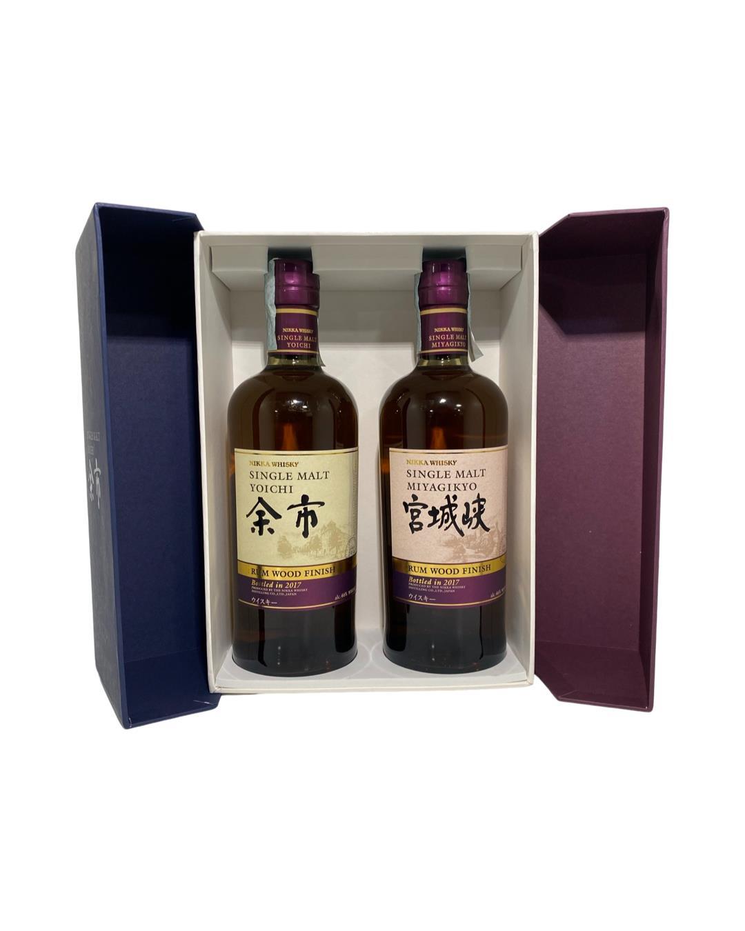Released in 2017, this set of two bottles includes a Yoichi Single Malt and a Miyagikyo Single Malt finished in Caribbean Rum casks. The Yoichi Single Malt retains its original characteristic pleasant peat, gentle smokiness and briny notes combined with additional sweetness on the palate and a bitter chocolate finish. The Miyagikyo Single Malt benefits from a caramelized sweetness and spiciness on the finish while keeping its usual fresh fruitiness and distinctive aroma with strong Sherry Cask notes.