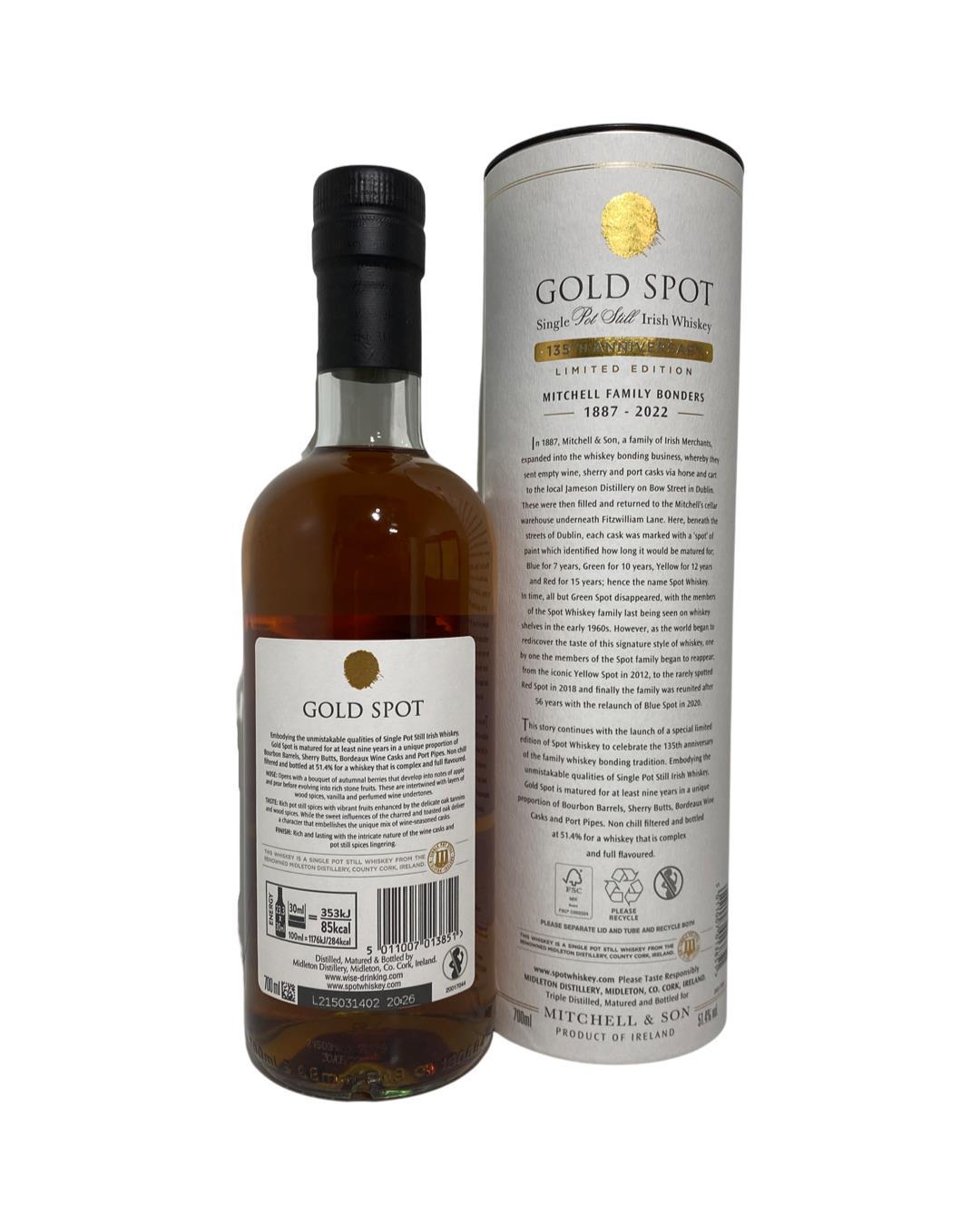 From the spot range and a cracker of a whiskey at that Gold Spot is matured for at least nine years in Bourbon Barrels, Sherry Butts, Bordeaux Wine Casks and Port Pipes. Non chill filtered and bottled at 51.4% ABV for a whiskey that is complex and full flavoured. For anyone who was a whiskey live im sure you went to get a sample. If you missed out then be sure not to a second time around.