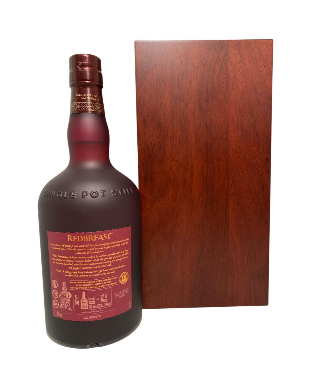 Master winner at the Irish Whiskey Masters in 2021, 2022, and 2023! This release is the oldest permanent member of the Redbreast range and one of their most award-winning. This expression has been matured in both bourbon and sherry casks as well as including ruby port casks for the first time to bring even more complexity and depth. Redbreast was originally created in 1912 by the legendary bottlers and distillers Gilbey’s, and the early incarnations were always sourced from the old Jameson Distillery on Bow Street in Dublin. Over the years a variety of expressions were released that were bottled at either 10 years old or 12 years old. Once the Jameson Distillery became part of Irish Distillers supplies of casks to Gilbey’s dried up and the last ‘Old Redbreast’ bottlings were released in 1985. The brand was subsequently sold to Irish Distillers and was fortunately revived in 1991 using whiskey sourced from the Midleton Distillery. All the bottlings released since then have been made using Midleton whiskey and in the main these make use of high-quality Sherry casks, with a lesser amount of Bourbon casks in each vatting. Whiskey connoisseurs have fallen back in love with Redbreast whiskey and for many it is the quintessential Irish Single Pot Still whiskey.