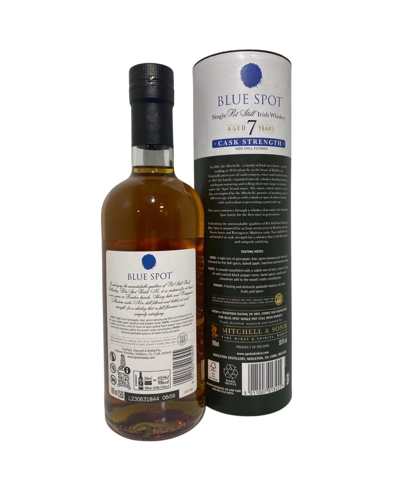 The highly anticipated collaboration from Irish Distillers and Mitchells & Sons, Blue Spot 7 Year Old Cask Strength, has finally arrived! The revival of the Blue Spot marks the end of a 56 year wait since the last recorded bottling of the old Blue Spot in 1964. Building on the bourbon and sherry maturation the new Blue Spot also contains whiskey aged in carefully selected Madiera casks, made in a cooperage in the north of Portugal and then sent to the island of Madeira. Bottled at cask strength, with an annual changing of abv this is Batch 2.