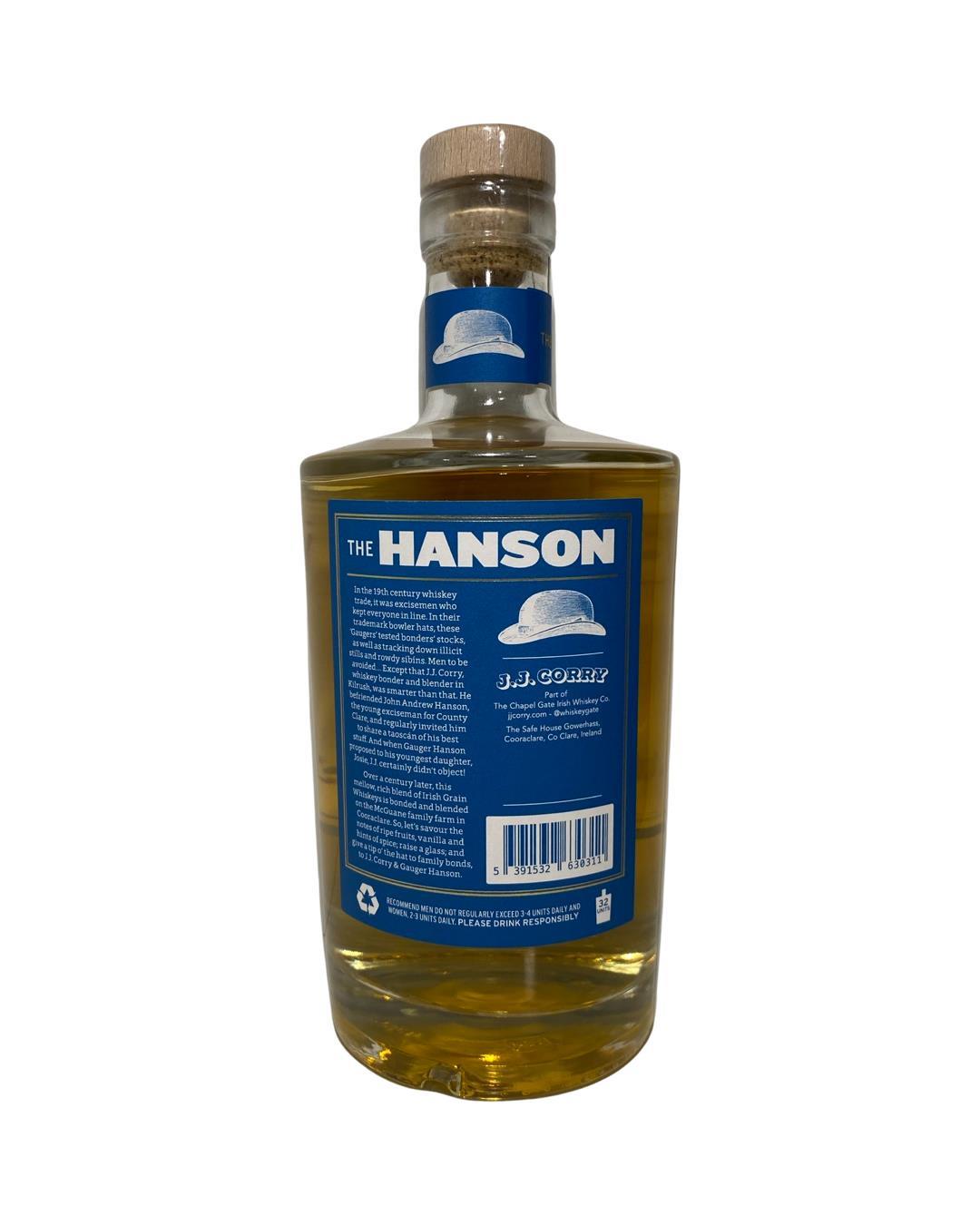 Named for J.J. Corry’s exciseman John Andrew ‘The Gauger’ Hanson. Back in the day, the excisemen, or ‘Gaugers’ as they were known, were tasked with keeping the Bonders on the straight and narrow! The Hanson reflects the matchmaking encompassed in Irish Whiskey Bonding and showcases the best of Ireland’s distilleries. It is a blend of Irish Grain Whiskeys carefully sourced from different distilleries. Aged for four, nine and ten years in ex-bourbon barrels, each cask was selected to build complexity upon the sweet grain whiskey. The result is a bright, fruit-forward Irish Whiskey, mellowed with deep oak and rich toasted vanilla notes. Bottled at 46% abv without any colouring or chill-filtered.