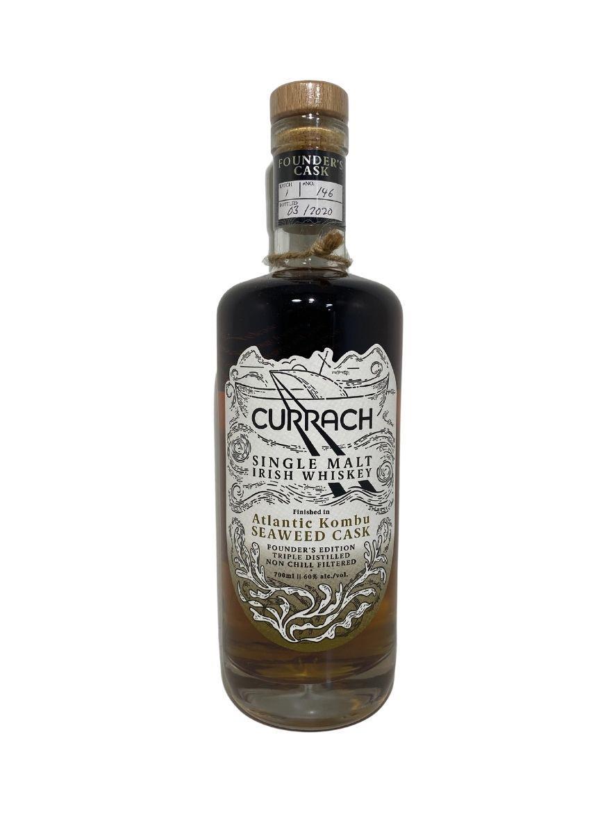 A limited edition expression following the release of the Currach Irish Single Malt, the Currach Founders Cask Strength Irish Single Malt. This whiskey was originally matured in ex-Bourbon casks before being finished in seaweed charred virgin oak casks, resulting in a multi-layered flavour profile with a delicate umami character. This single cask is limited to 220 hand-filled and hand numbered bottles at cask strength (60% abv). These bottles have been drawn from the very first cask that they used to explore the idea of enriching a single malt Irish Whiskey with seaweed. The aim in which was to create the perfect union of the Irish land and sea in whiskey and showcase the best of Irish terroir.