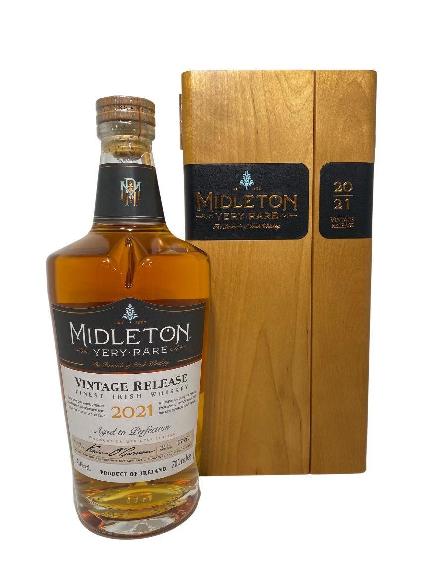 The 2021 edition to Ireland's most premium and beloved whiskey series; Midleton Very Rare. This is the 38th installment and the first release under Kevin O' Gorman appointed Master Distiller of the Midleton Distillery in 2020. Both the bottle and gift box are in very good condition, certificate and distillery invite are also included.Bottle number 7451