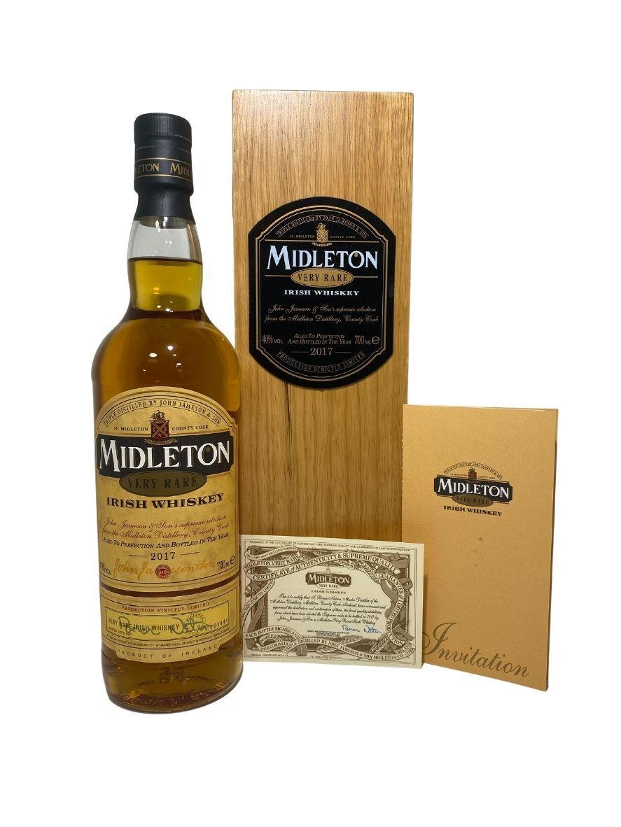 The Midleton Very Rare 2017, is a bottling brought out by the Midleton Distillery in Co. Cork. The ‘Midleton Very Rare’ range was launched in 1984 and a new vintage has been released every year since then. Barry Crockett started off the ‘Midleton Very Rare’ range while he was the Master Distiller of Midleton Distillery, The bottle and box are in excellent condition and include the distillery invite and certificate. Bottle 3446 number27835
