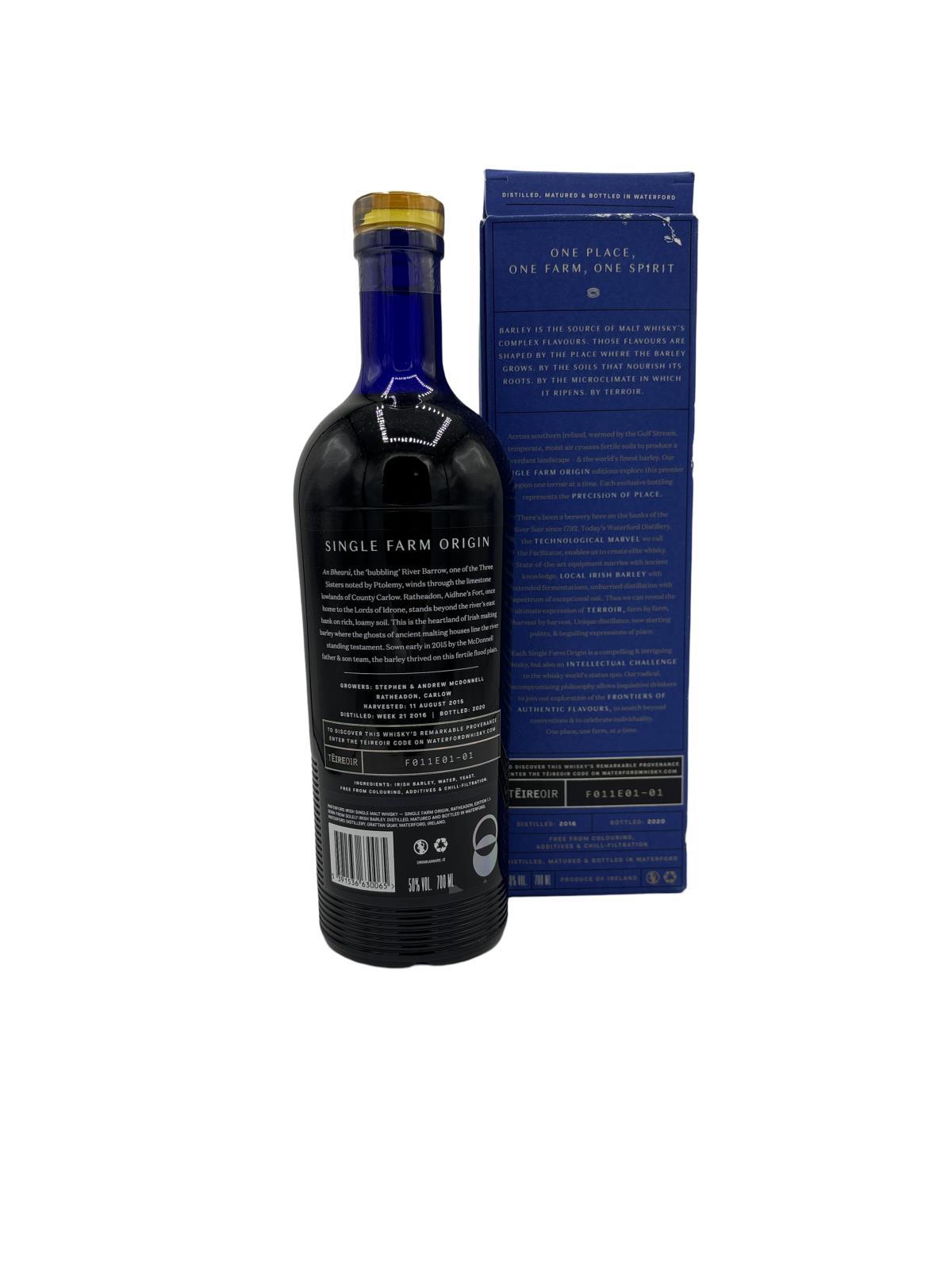 One of the first releases from Waterford Whiskey this is one of the most saught after in their line up. Waterford Whiskey greatly under estimated the demand for their whiskey having only 2000 bottles to release to the market having considered making it a Distillery and Online exclusive before hand. Made in Ratheadon on the River Barrow with a great history with the Irish whiskey industry already housing some of the largest malting houses all along the river. atheadon 1.1 tastes of Creamy, bread crust, white pepper, soft spice, orange (reminds me of Jaffa cakes) and berries. A long-lasting orange, oily finish. Located in the former Guinness Brewery on the banks of the River Suir, Waterford Distillery was founded in 2015 and has built a reputation for crafting whiskeys with an emphasis on ‘Terroir’ and the geographical sourcing of individual batches of barley. The distillery is the brainchild of Mark Reynier who was famously responsible for the resurrection of Bruichladdich distillery on Islay in Scotland. The pot stills at Waterford were originally part of the Inverleven Distillery on Clydeside and had been rescued by Mark just in case he found a use for them in the future. Additionally there is some hi-tech kit at the distillery including a mash filter and other state of the art equipment. Bottlings feature an emphasis on barley and its origins and the distillery uses a mix of casks for maturation including American oak and various types of French oak.