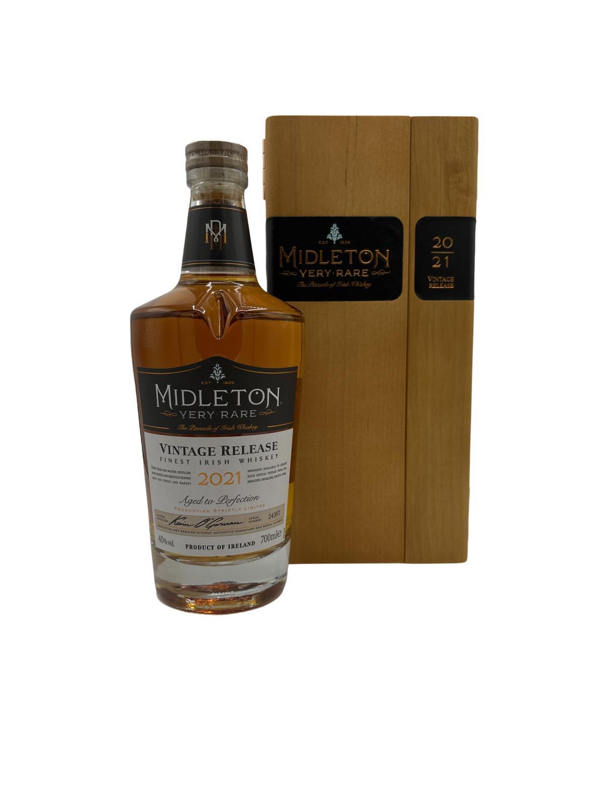 The 2021 edition to Ireland's most premium and beloved whiskey series; Midleton Very Rare. This is the 38th installment and the first release under Kevin O' Gorman, appointed Master Distiller of the Midleton Distillery in 2020. The Midleton Very Rare range of whiskeys is a collection of highly regarded Irish whiskeys crafted at the Midleton Distillery in County Cork, Ireland. With a reputation for excellence, these whiskeys are known for their exceptional quality, craftsmanship, and limited availability. Characterized by smoothness, complexity, and depth of flavour, Midleton Very Rare often exhibits notes of ripe fruits, honey, vanilla, spices, and oak. The component casks are typically aged for around 12-27 years but each yearly batch is unique and for this reason the whiskeys are highly collectible. To this day the Midleton Very Rare series is still regarded as the pinnacle and benchmark for ultra-premium blended Irish whiskeys.