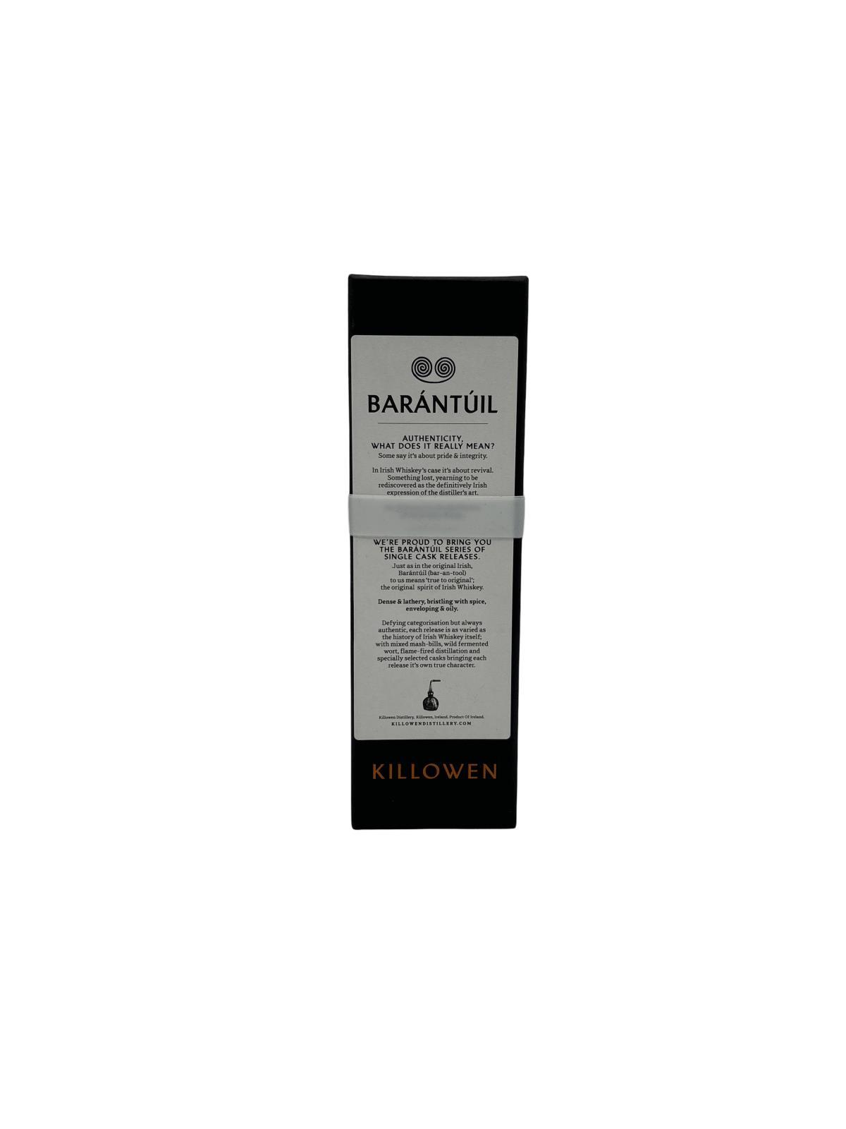 Being one of the most sought after bottles for collections with the likes of their dalriadan series and the experimental series Barantúil was sure to be no different.Killowen Barántúil Cask #KD024 is 3 year old mixed mash bill Irish whiskey bottled at a cask strength of 60.14% abv.