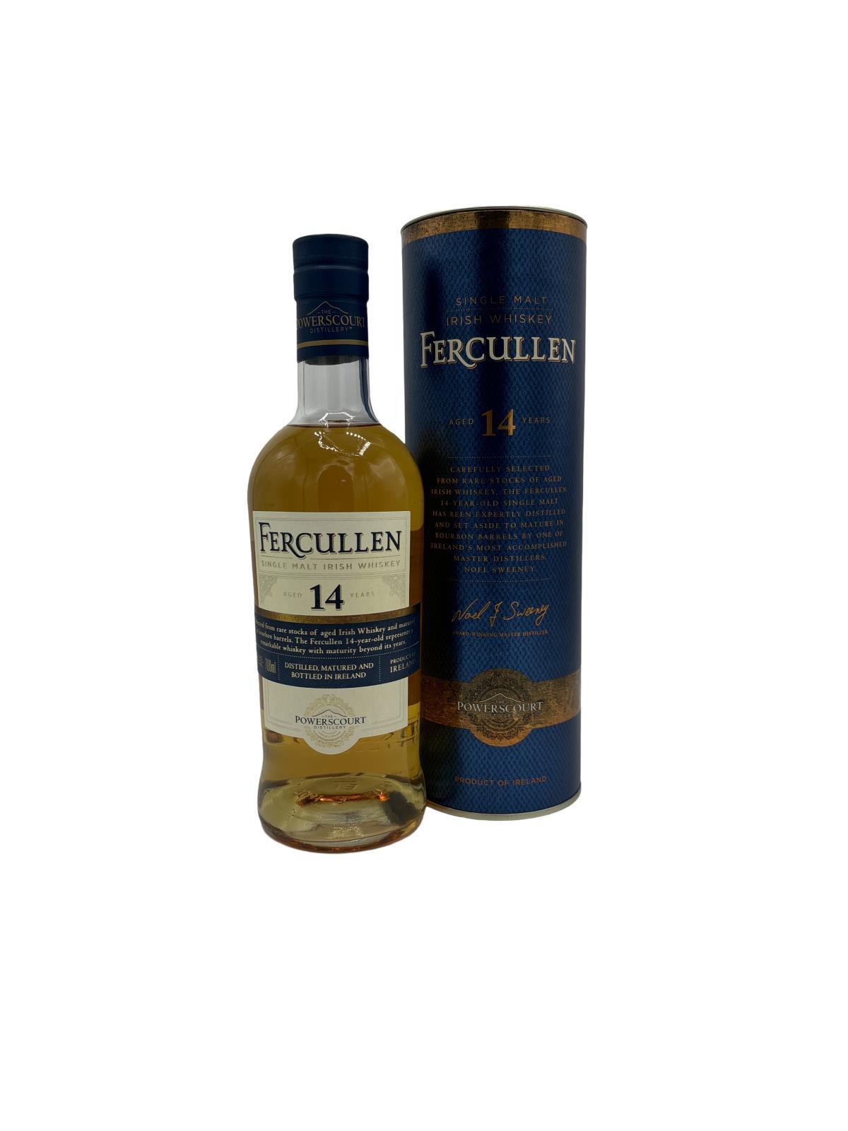 Matured exclusively in ex-Bourbon barrels by Master Distiller Noel Sweeney, the Fercullen 14 Year Old Single Malt has notes of almonds and plums with a slight cinnamon spice.