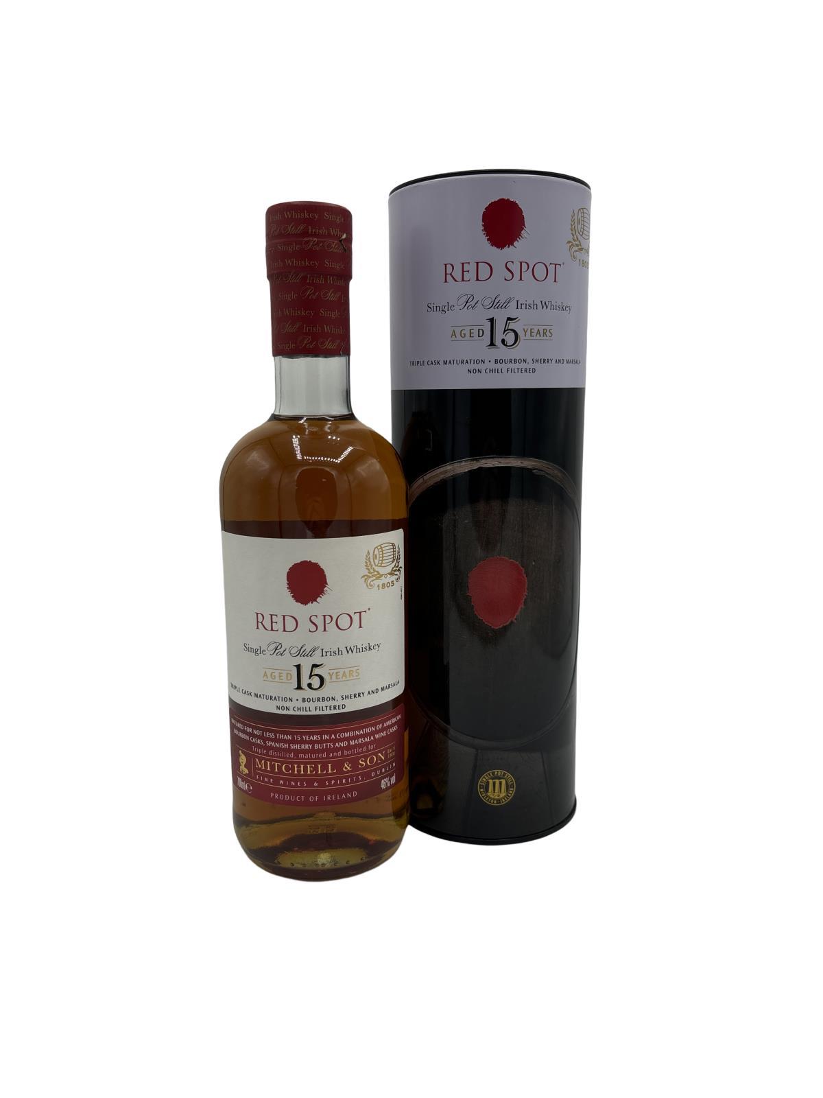 A whiskey that has been matured in a combination of American Bourbon casks, Sherry butts and Sicilian Marsala wine casks. Its name originates from the Mitchell family's whiskey bonding business, whereby different casks would be marked with a spot of paint, such as; Blue Spot, Green Spot, Yellow Spot & Red Spot.