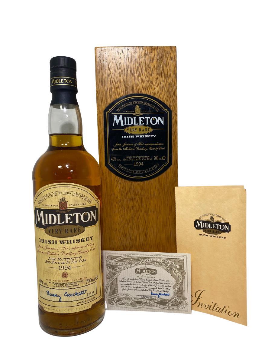 The Midleton Very Rare 1994, is a bottling brought out by the Midleton Distillery in Co. Cork. The ‘Midleton Very Rare’ range was launched in 1984 and a new vintage has been released every year since then. Barry Crockett started off the ‘Midleton Very Rare’ range while he was the Master Distiller of Midleton Distillery, The bottle and box are in excellent condition and include the distillery invite and certificate. Bottle number 22040
