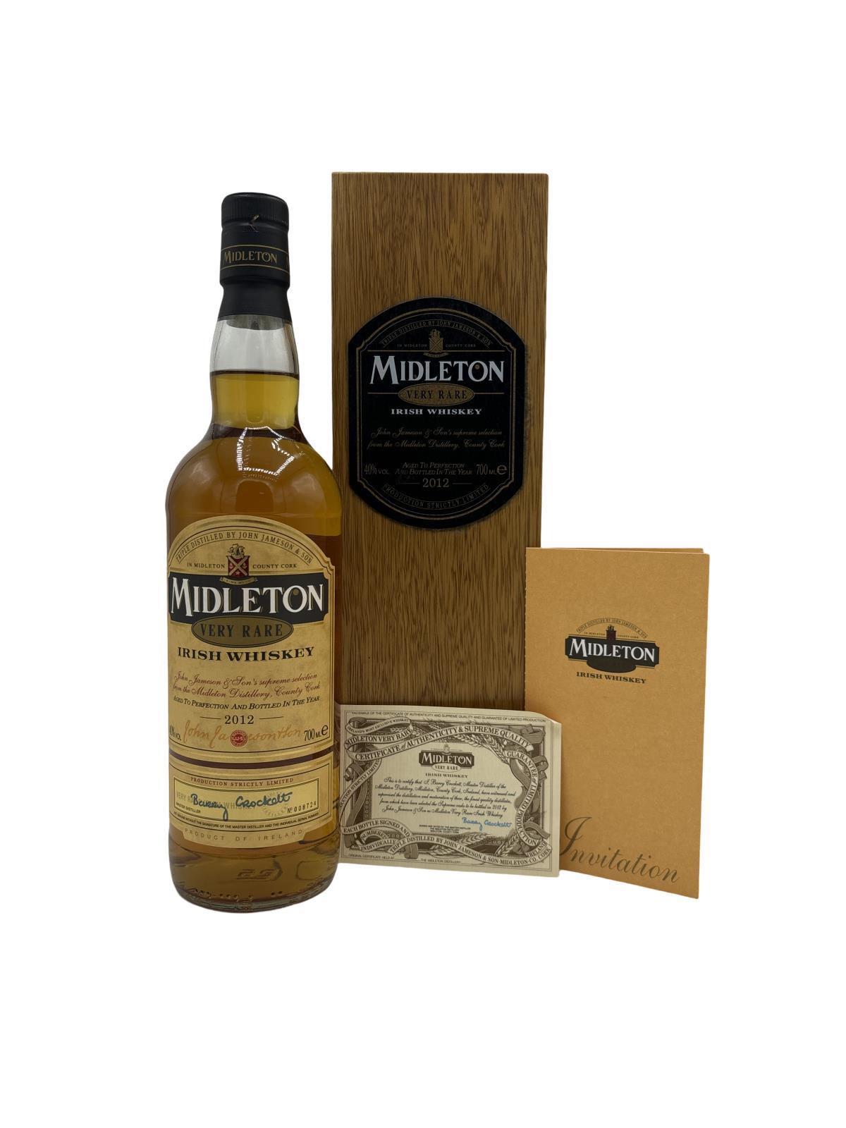 The Midleton Very Rare 2012, is a bottling brought out by the Midleton Distillery in Co. Cork. The ‘Midleton Very Rare’ range was launched in 1984 and a new vintage has been released every year since then. Barry Crockett started off the ‘Midleton Very Rare’ range while he was the Master Distiller of Midleton Distillery.The Bottle and box are in great condition.The Midleton Very Rare range of whiskeys is a collection of highly regarded Irish whiskeys crafted at the Midleton Distillery in County Cork, Ireland. With a reputation for excellence, these whiskeys are known for their exceptional quality, craftsmanship, and limited availability. Characterized by smoothness, complexity, and depth of flavour, Midleton Very Rare often exhibits notes of ripe fruits, honey, vanilla, spices, and oak. The component casks are typically aged for around 12-27 years but each yearly batch is unique and for this reason the whiskeys are highly collectible. To this day the Midleton Very Rare series is still regarded as the pinnacle and benchmark for ultra-premium blended Irish whiskeys.