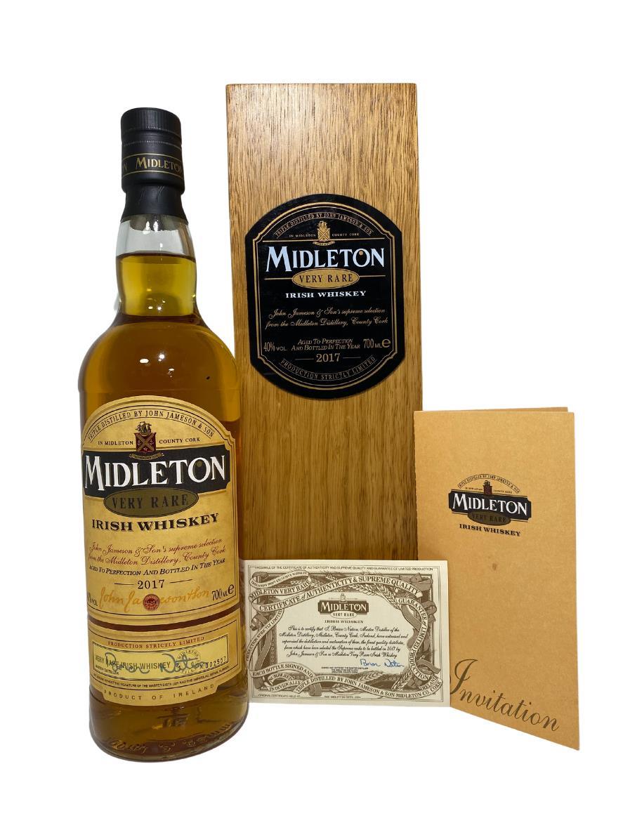 The Midleton Very Rare 2017, is a bottling brought out by the Midleton Distillery in Co. Cork. The ‘Midleton Very Rare’ range was launched in 1984 and a new vintage has been released every year since then. Barry Crockett started off the ‘Midleton Very Rare’ range while he was the Master Distiller of Midleton Distillery, in 2013 Barry Crockett retired from his role of Master Distiller. From 2014 onwards Brian Nation has been creating the ‘Midleton Very Rare’ range, maintaining its role as standard-bearer and pinnacle of Irish Whiskey. The bottle and gift box in great condition also include the cert and distillery invite. Bottle 2557