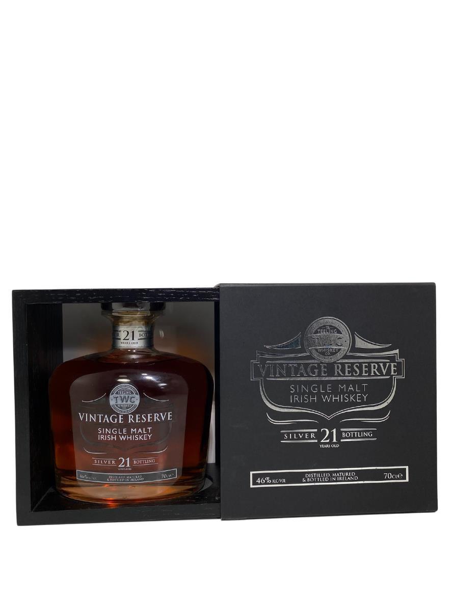 Packaged in Silver Reserve bottling and consisting of 21 Year Old Irish Single Malt whiskey matured firstly in Bourbon casks then allowed to marry in Sauternes wine casks for an extra twelve months to provide a full flavoured Irish whiskey taste experience. Teeling 21 year old only has hand selected casks chosen for their distinctive taste qualities, this small batch bottling is limited to just 5,000 bottles and was honoured as the Best Irish Single Malt in the World.