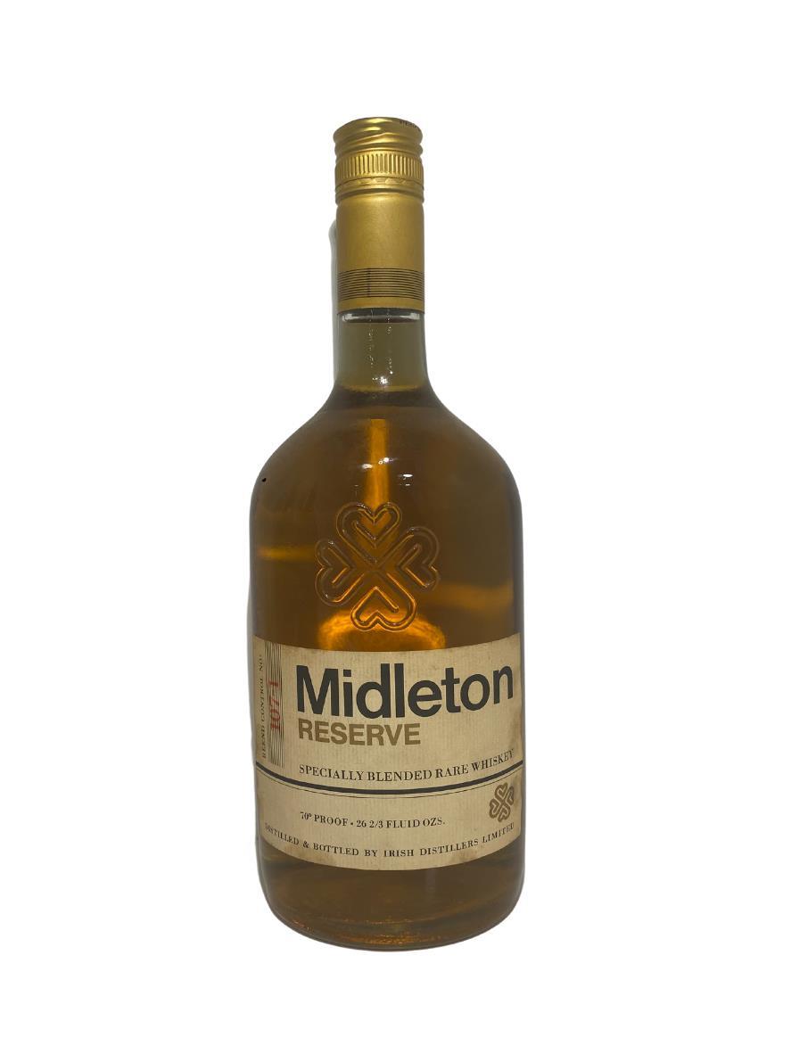 This is a rare bottling of Old Midleton distillery whiskey from the late 1960s or early 1970s. We currently have a few of these bottles available and they are all in good condition, as pictured. The contents are 26 2/3 Fl Oz and it is bottled at 70 proof. Back in the good old days (1972) you could buy a glass of this for less than 40p!