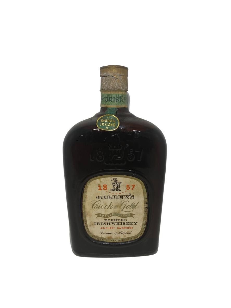 An old bottle of Crock o' Gold blended Irish whiskey bottled by Gilbey's of Ireland Ltd., 21 Kildare Street, Dublin. The practice of merchant own-bottlings was common throughout Ireland and indeed, many of the most recognisable of Irish whiskies today started out as such. This bottle being a prime example.