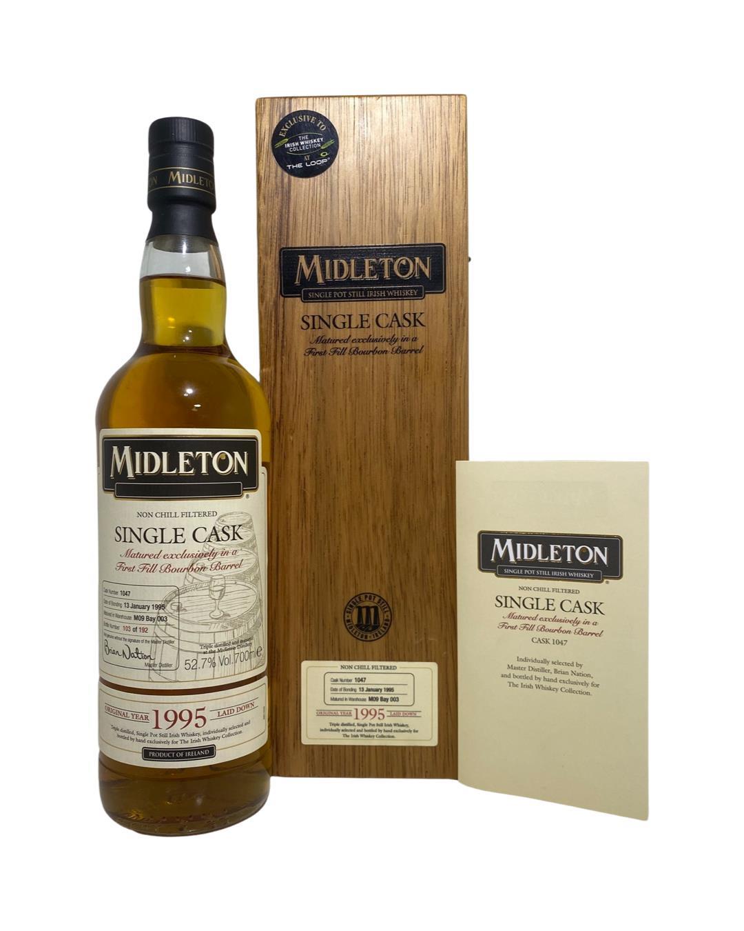 A very special Single Cask of Midleton Single pot still Irish Whiskey laid down in January 1995 which was bottled exclusively for the Irish Whiskey Collection in Dublin Airport. Cask No 1047, A First Fill Bourbon Barrel.