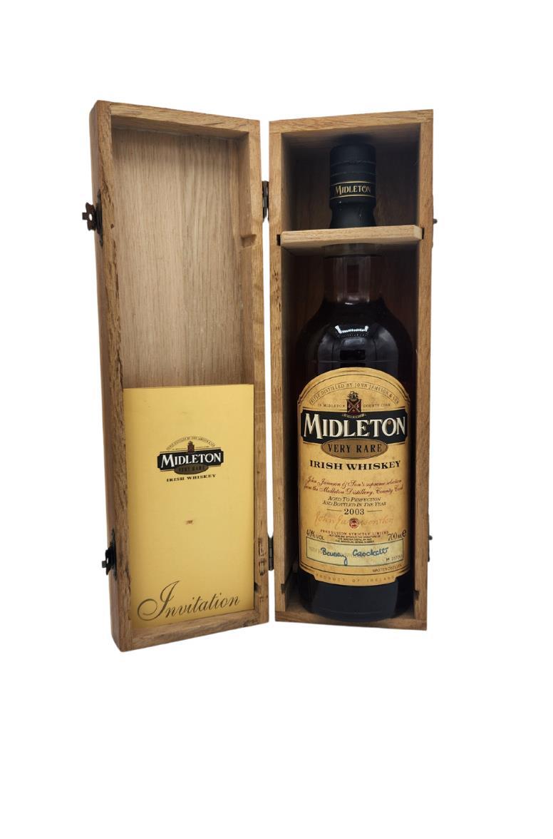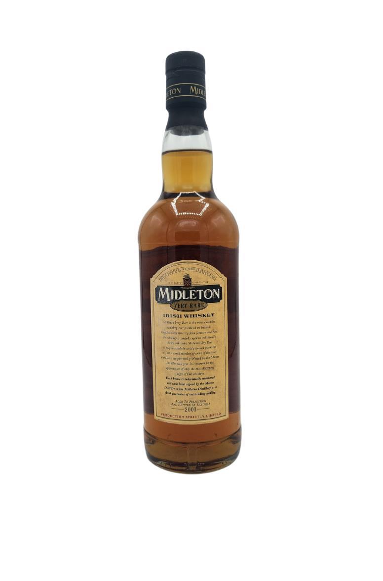 The Midleton Very Rare 2003, is a bottling brought out by the Midleton Distillery in Co. Cork. The ‘Midleton Very Rare’ range was launched in 1984 and a new vintage has been released every year since then. Barry Crockett started off the ‘Midleton Very Rare’ range while he was the Master Distiller of Midleton Distillery.The Bottle and box are in great condition. The Midleton Very Rare range of whiskeys is a collection of highly regarded Irish whiskeys crafted at the Midleton Distillery in County Cork, Ireland. With a reputation for excellence, these whiskeys are known for their exceptional quality, craftsmanship, and limited availability. Characterized by smoothness, complexity, and depth of flavour, Midleton Very Rare often exhibits notes of ripe fruits, honey, vanilla, spices, and oak. The component casks are typically aged for around 12-27 years but each yearly batch is unique and for this reason the whiskeys are highly collectible. To this day the Midleton Very Rare series is still regarded as the pinnacle and benchmark for ultra-premium blended Irish whiskeys.