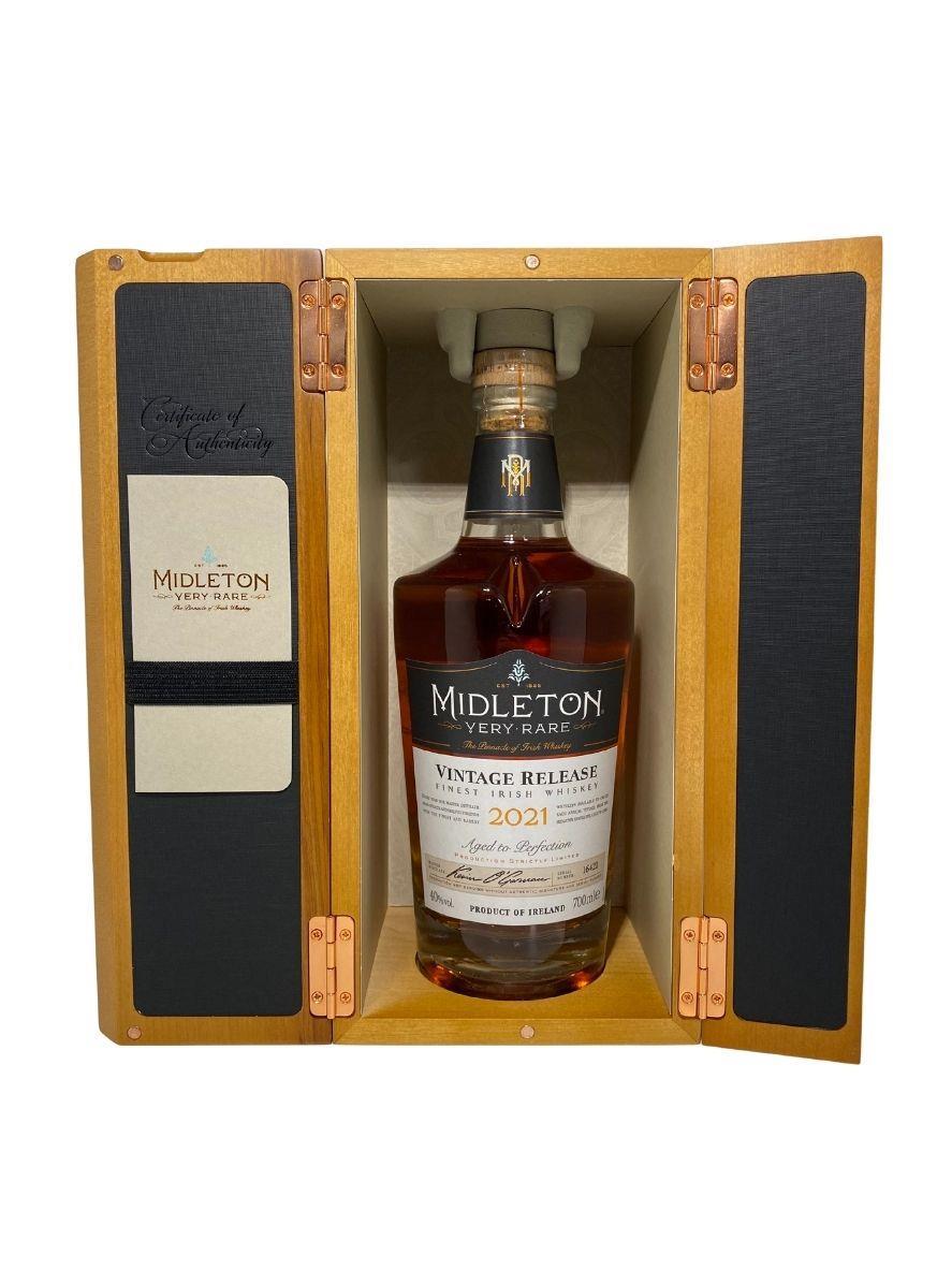 The 2021 edition to Ireland's most premium and beloved whiskey series; Midleton Very Rare. This is the 38th installment and the first release under Kevin O' Gorman appointed Master Distiller of the Midleton Distillery in 2020. Both the bottle and gift box are in very good condition, certificate and distillery invite are also included. Bottle number 16421
