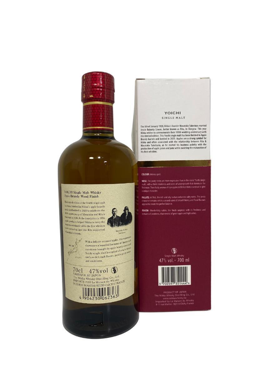 Both are NAS whiskies. They go through the same maturation process that you'd find behind a normal bottle of Yoichi or Miyagikyo. However, after that's done, they spend a further six months in casks that were formerly holding apple brandy for 28+ years.Nikka says that for the Yoichi, we should expect the ex-apple brandy cask finish to harmonize a mellow sweetness with a deep peatiness.