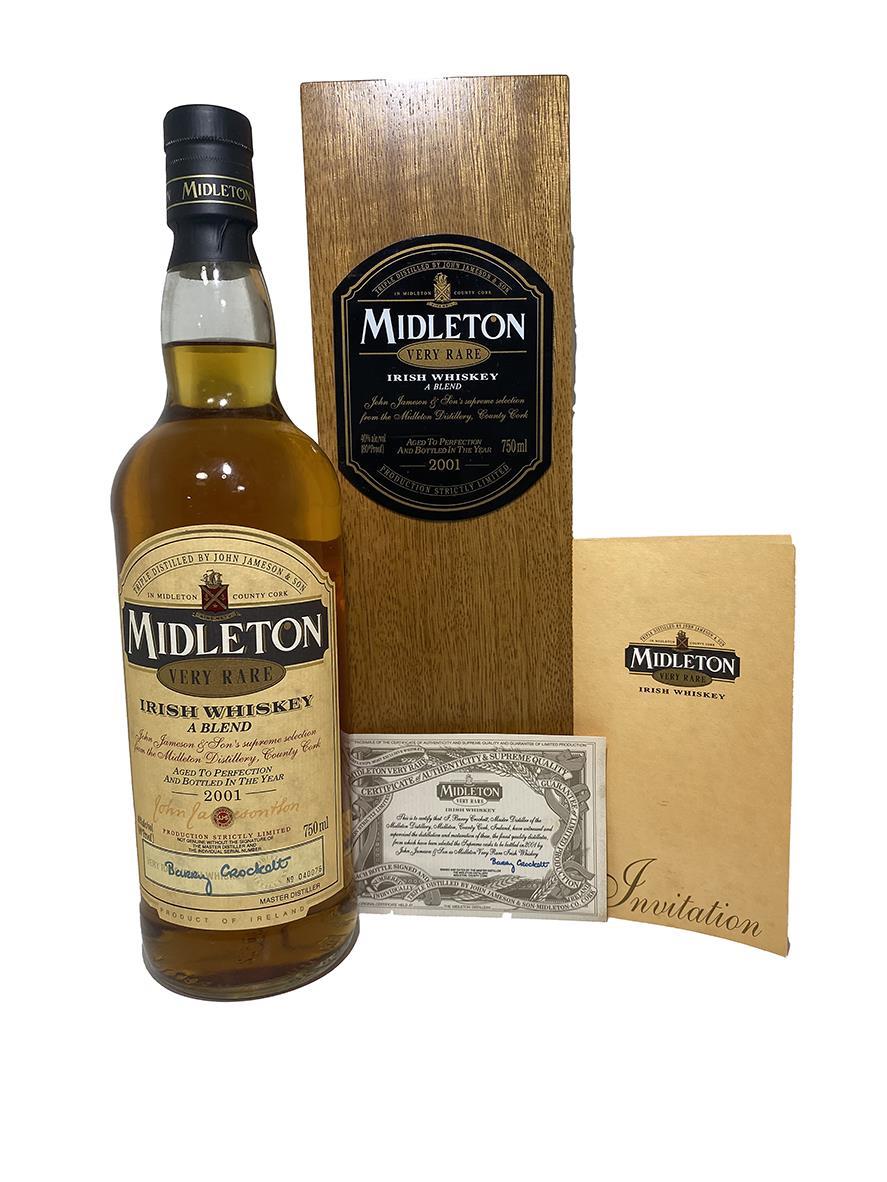 The Midleton Very Rare 2001, is a bottling brought out by the Midleton Distillery in Co. Cork. The ‘Midleton Very Rare’ range was launched in 1984 and a new vintage has been released every year since then. Barry Crockett started off the ‘Midleton Very Rare’ range while he was the Master Distiller of Midleton Distillery, The bottle and box are in excellent condition and include the distillery invite and certificate. Bottle number 40076