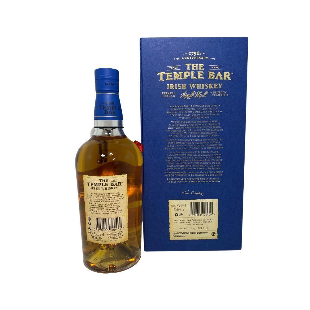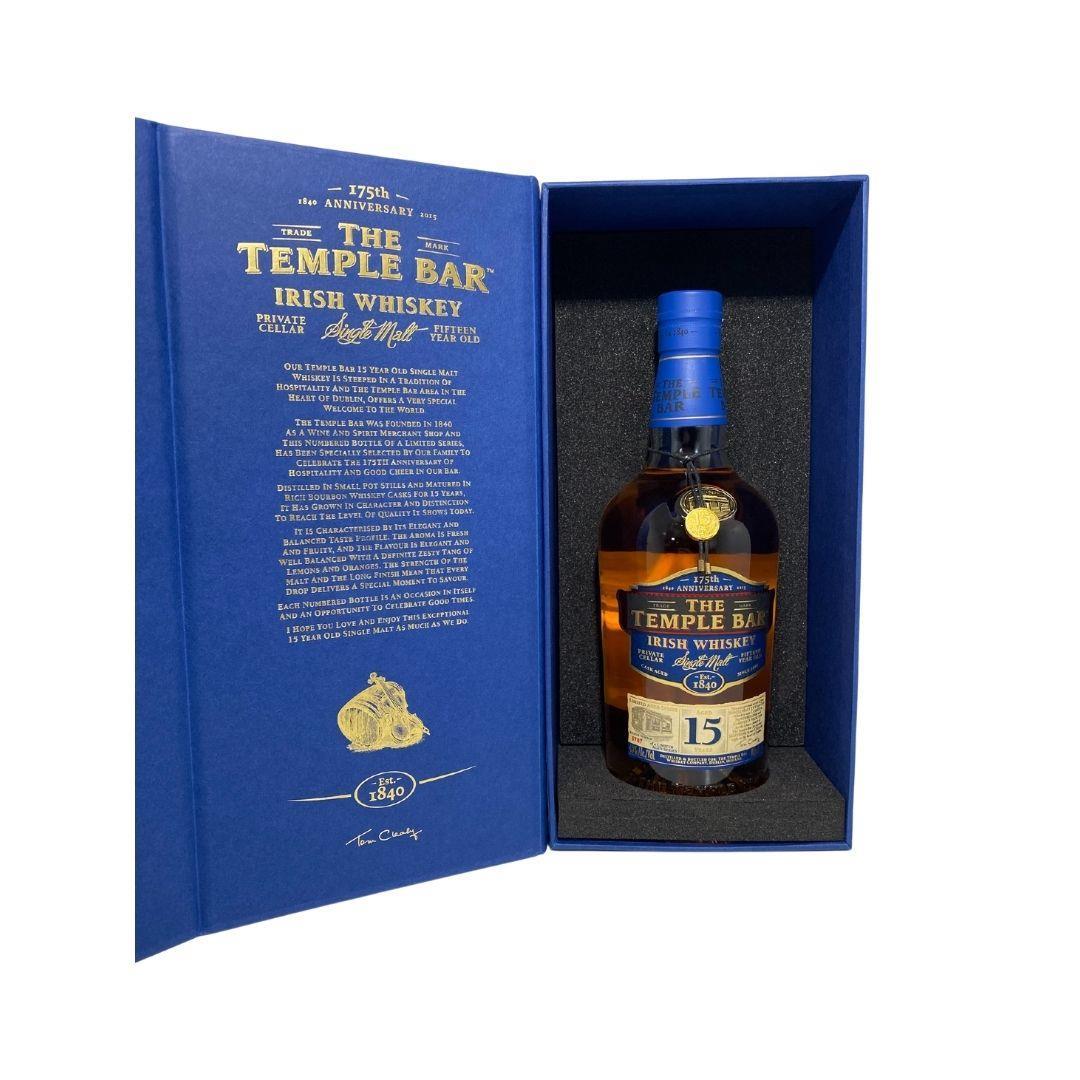 This is a limited edition 15 single malt named after the famous pub in Dublin's Temple Bar district. Each bottle is individually numbered and packed in a sturdy card gift box. The Temple Bar pub was founded in 1840 and this bottle commemorates its 175th anniversary. Aged entirely in ex-bourbon barrels.
