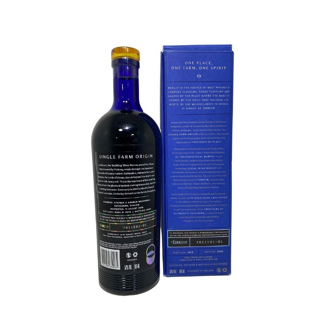 One of the first releases from Waterford Whiskey this is one of the most saught after in their line up. Waterford Whiskey greatly under estimated the demand for their whiskey having only 2000 bottles to release to the market having considered making it a Distillery and Online exclusive before hand. Made in Ratheadon on the River Barrow with a great history with the Irish whiskey industry already housing some of the largest malting houses all along the river. atheadon 1.1 tastes of Creamy, bread crust, white pepper, soft spice, orange (reminds me of Jaffa cakes) and berries. A long-lasting orange, oily finish.