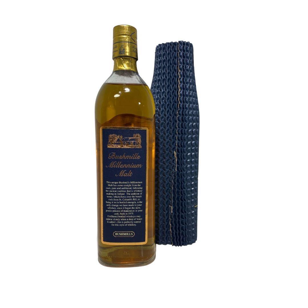 This bottle of Bushmills Millennium Single Malt was bottled around the Millennium and what resulted was the longest aged Bushmills whiskey available then, with this exceptional cask being 202.Bushmills Millennium Malt is a series of single cask bottlings from whiskey distilled in 1975 and matured in ex-Bourbon barrels. This unique Bushmills Millennium Malt has come straight from the cask, pure and unfiltered, following the ancient tradition that is whiskey making in Ireland. The addition of water, which flows over the basalt rock from St. Columbs Rill, to bring it to its bottled strength, is the only change Bushmills have made to your whiskey since it began the slow gentle process of maturation in your cask, back in 1975.