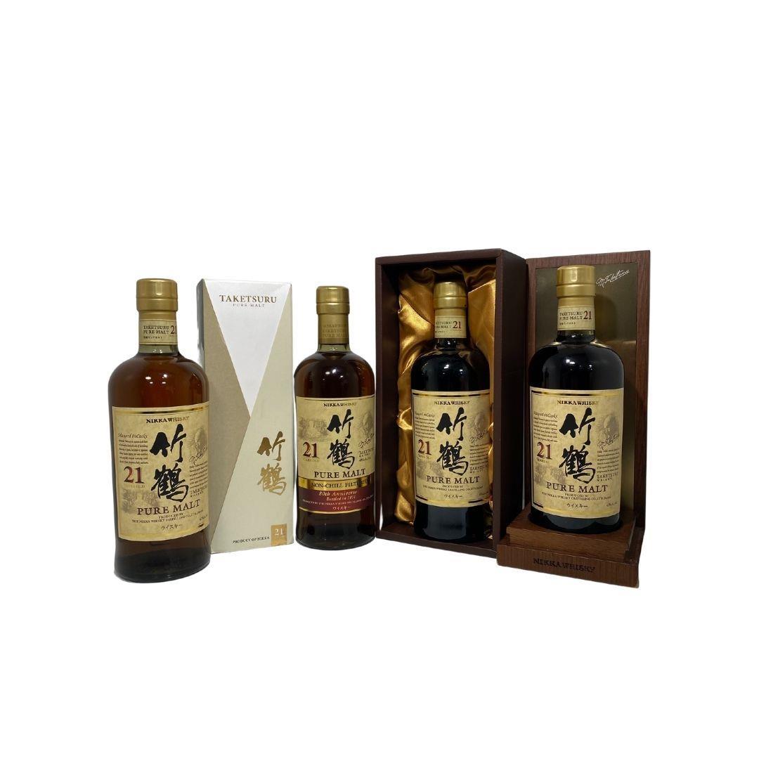 Showcasing 4 different styles of Taketsuru 21 year old. This collections shows the different packaging styles that the 21 year old Pure malt has been released in. Taketsuru 21 combines the strong character of Yoichi with the elegance and precision of Miyagikyo. Both traditional and innovative, this outstanding pure malt is a worthy tribute to Masataka Taketsuru, the father of Japanese whisky and founder of Nikka. Selected as world’s best blended malt four times, the Taketsuru 21 is quite simply one of the great whiskies.