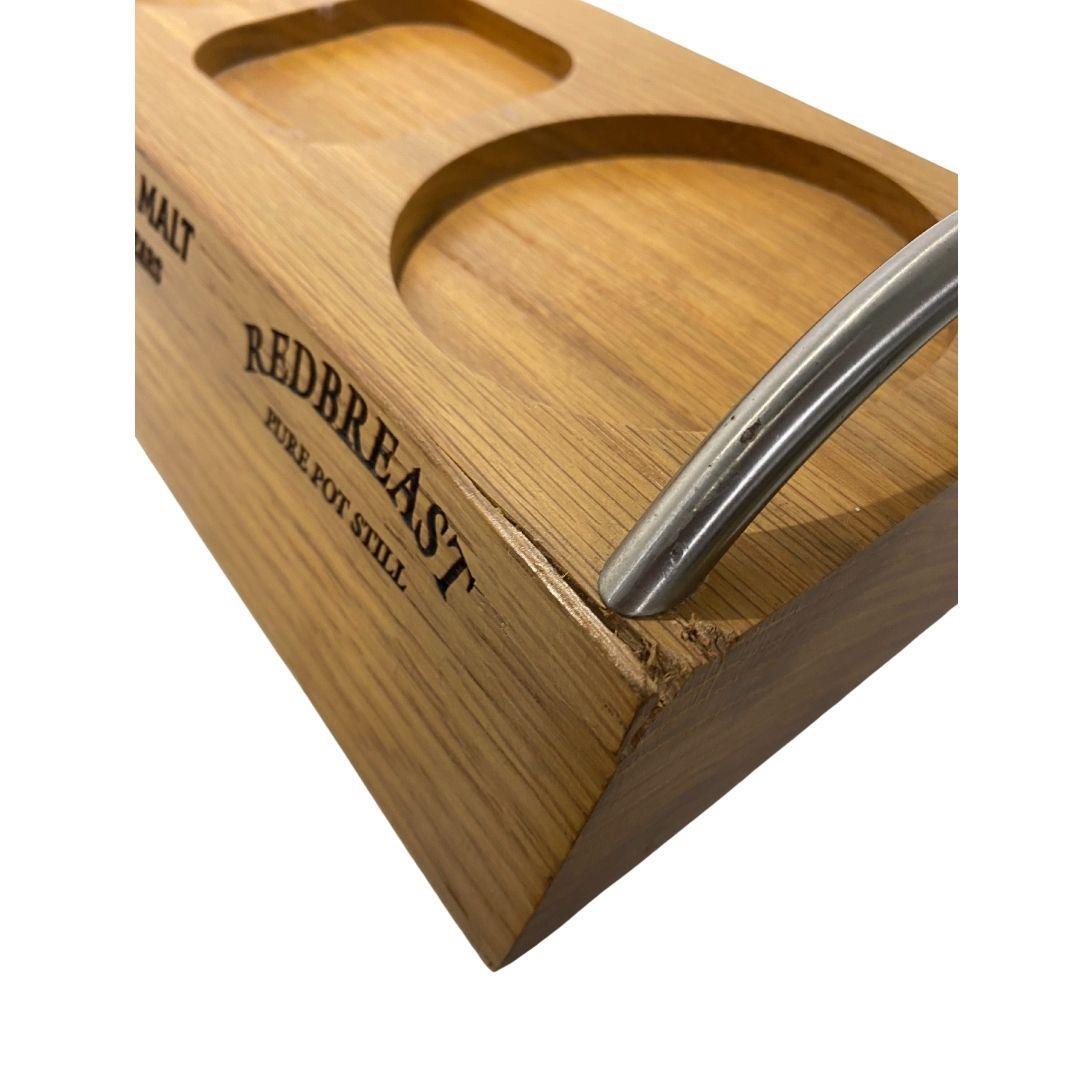 A wooden plinth for the 6 premium whiskeys of Ireland. Perfect for a home bar or a great showcase if you have the bottles mentioned on the plinth. Slight damage to one corner as seen in the photo.