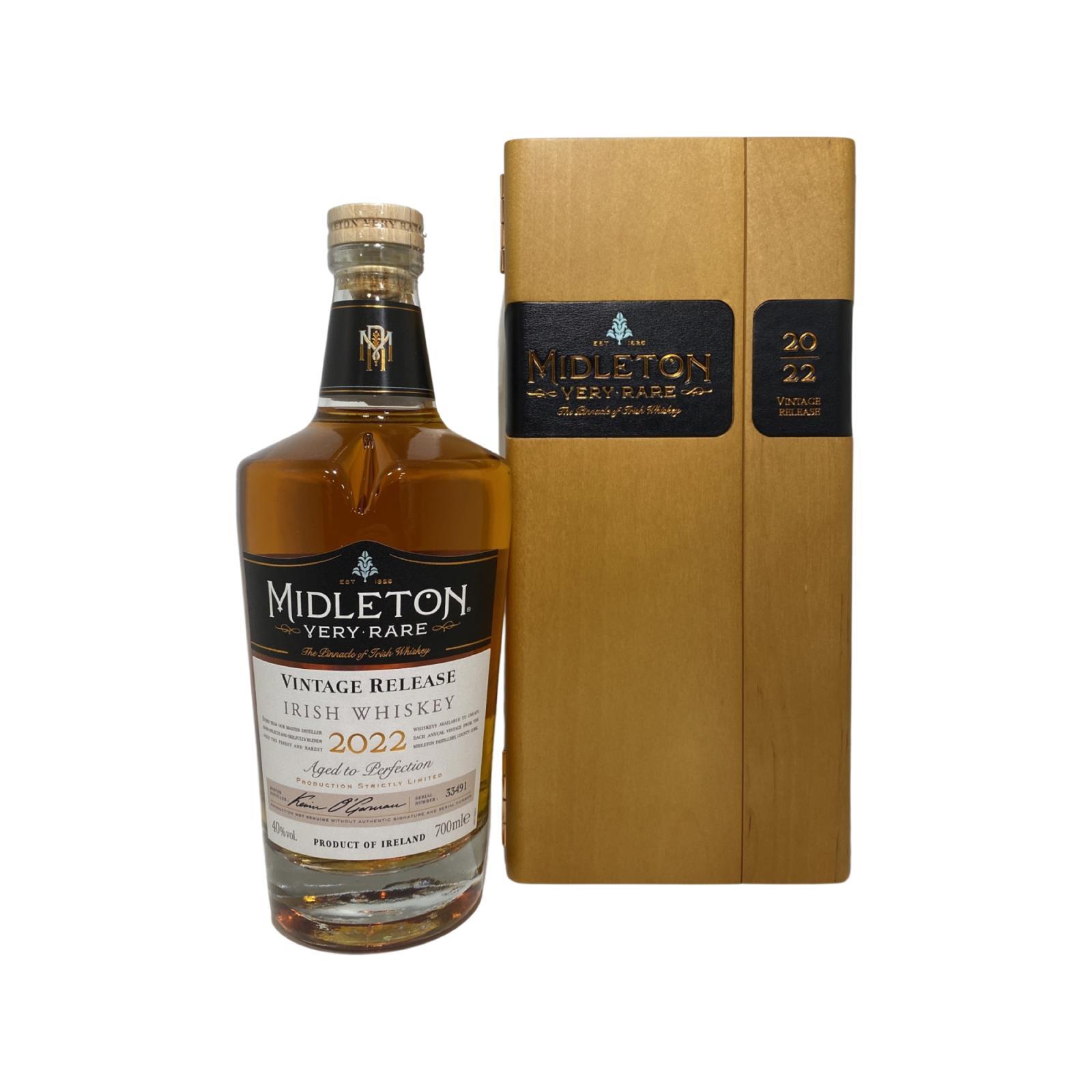The 2022 edition to Ireland's most premium and beloved whiskey series; Midleton Very Rare. This is the 39th installment and the first release under Kevin O' Gorman appointed Master Distiller of the Midleton Distillery in 2020. Both the bottle and gift box are in very good condition, certificate and distillery invite are also included. Bottle number
