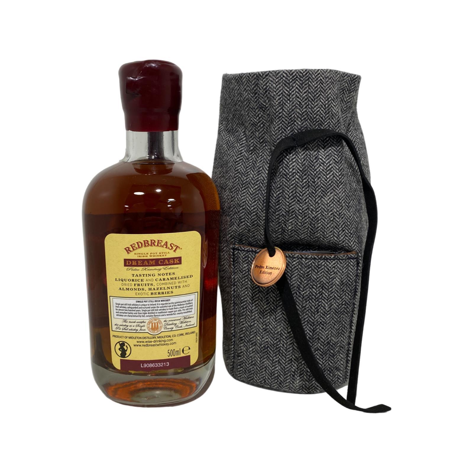 Created through a combination of hand selected Bourbon and Sherry casks aged between 20 to 33 years, marrying the vatting in a Pedro Ximénez Sherry and Bourbon seasoned Butt. Guided by the vision of Billy Leighton, Redbreast Dream Cask Pedro Ximenez Edition is a story 33 years in the making and four casks in the shaping. Bottle number 805/924