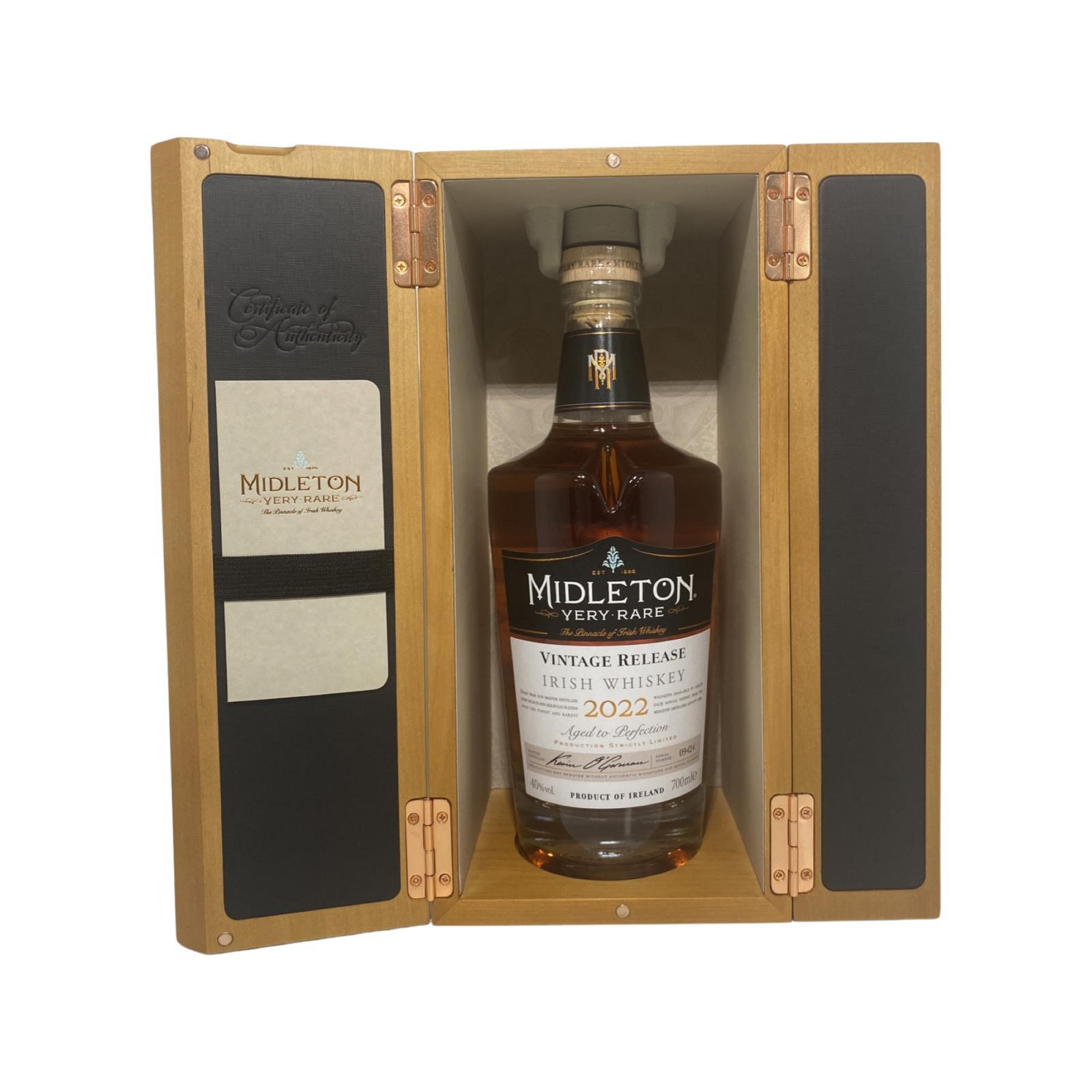 The 2022 edition to Ireland's most premium and beloved whiskey series; Midleton Very Rare. This is the 39th installment and the first release under Kevin O' Gorman appointed Master Distiller of the Midleton Distillery in 2020. Both the bottle and gift box are in very good condition, certificate and distillery invite are also included. Bottle number 9501