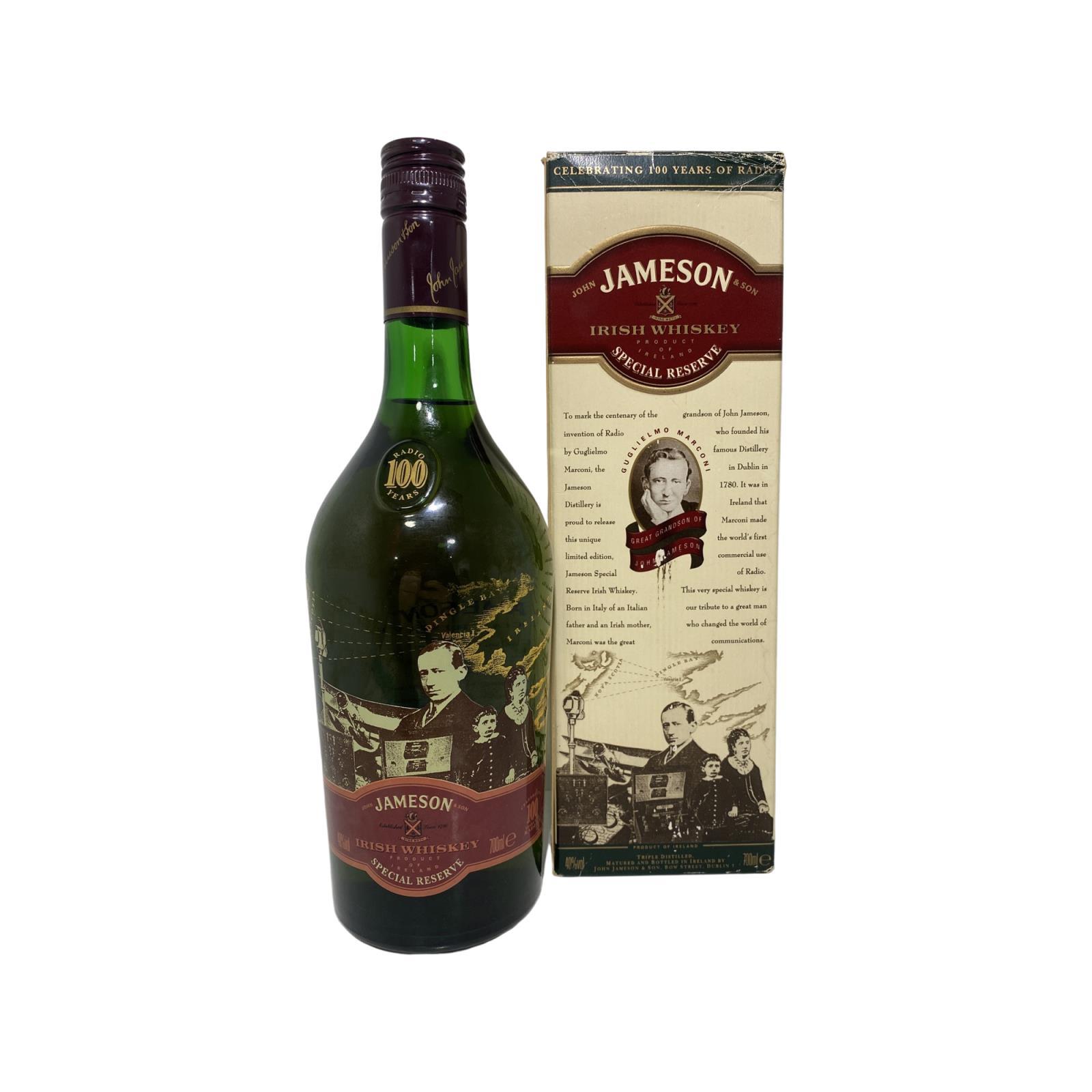 This Jameson Marconi – 100 Years of Radio bottle is a special commemorative bottle to celebrate Guglielmo Marconi, Italian inventor of the Radio. This is no surprise considering that was actually a member of the Jameson family. His mother was Annie Jameson, making him a great-grandson of the distillery founder, John Jameson. The version also saw the earliest use of virgin oak casks by IDL. Seen as a direct predecessor of the later fan favourite, Jameson Gold.