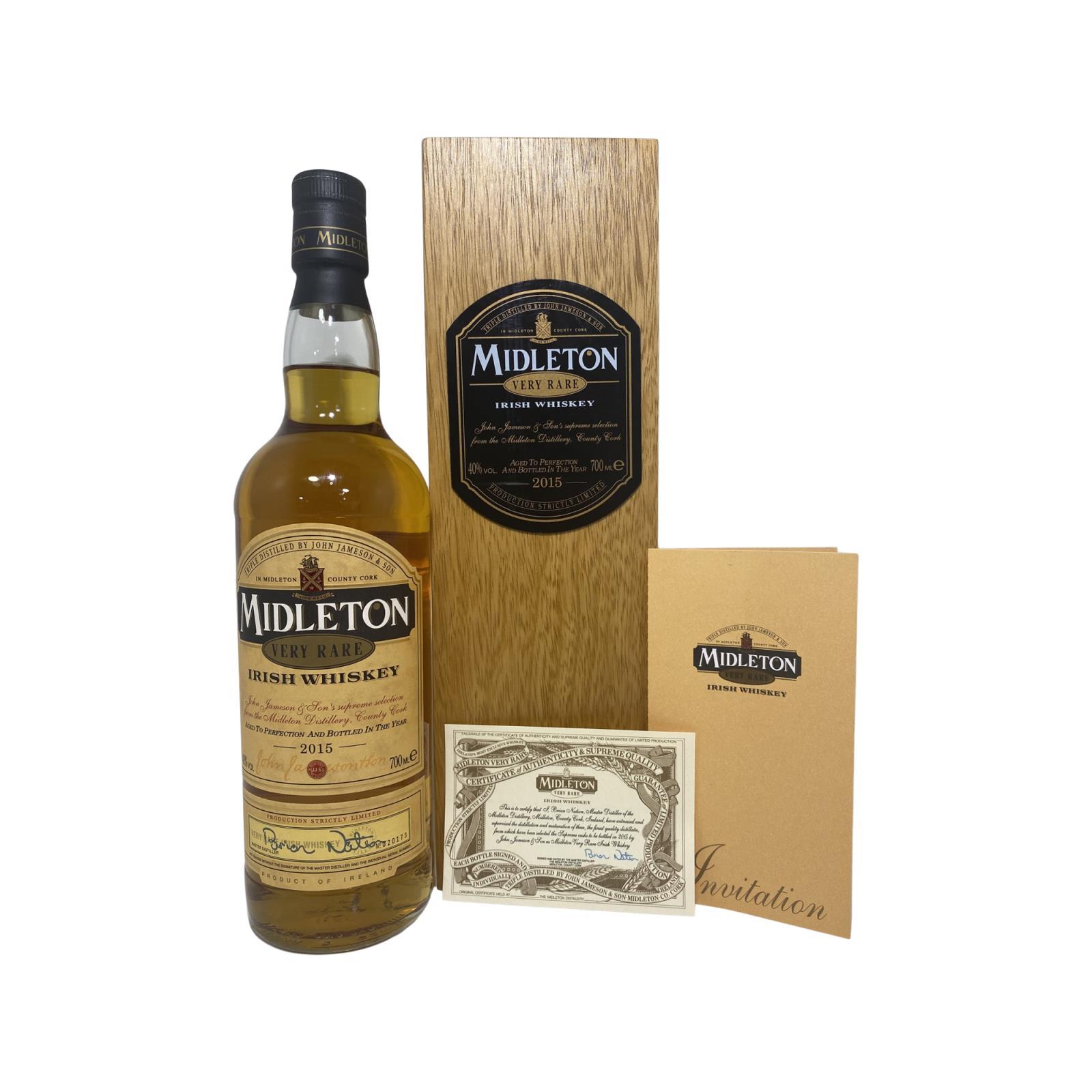 The Midleton Very Rare 2015, is a bottling brought out by the Midleton Distillery in Co. Cork. The ‘Midleton Very Rare’ range was launched in 1984 and a new vintage has been released every year since then. Barry Crockett started off the ‘Midleton Very Rare’ range while he was the Master Distiller of Midleton Distillery, in 2013 Barry Crockett retired from his role of Master Distiller. From 2014 onwards Brian Nation has been creating the ‘Midleton Very Rare’ range, maintaining its role as standard-bearer and pinnacle of Irish Whiskey. The bottle and gift box in great condition also include the cert and distillery invite. Bottle number 20173